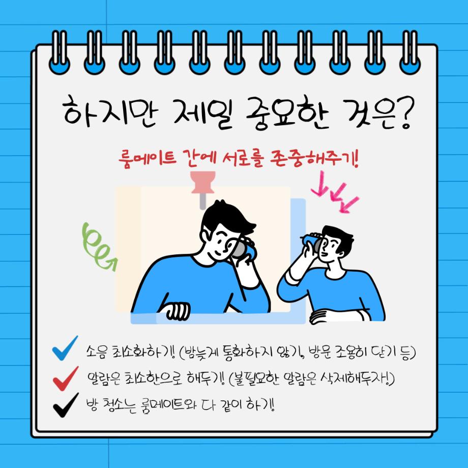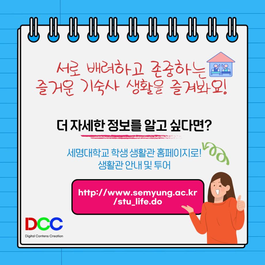 본문 시작 홈으로 MCC News 학과소개 교수소개 학과과정 MCC News MCC SNS 홈페이지가이드 학과 및 재학생 학과 및 재학생 교수 및 졸업생 미디어 정보통 학과 및 재학생 페이스북 트위터 프린트 세명대학교 기숙사 아이템 디지털콘텐츠창작학과 3834 2023-02-24 곧 개강으로 인해 기숙사를 쓰게 될 기숙사생을 위한 꿀팁! 체크리스트들을 확인하며 빼먹은 물건이 없는지 확인해보세요! 목록 이전🐤 디지털콘텐츠창작학과 꿈설계학기 🐤 다음 디지털콘텐츠창작학과 학위수여식👩🎓👨🎓 담당부서 : 미디어콘텐츠창작학과 담당자 : - 연락처 : 043-649-1741 최종수정일 : 2024-10-26 만족도조사 만족도 조사 이 페이지에서 제공하는 정보에 대하여 만족하시나요? 매우만족 만족 보통 불만족 매우불만족