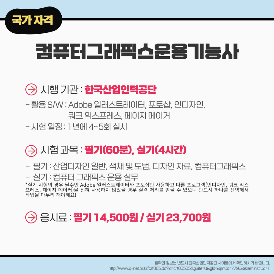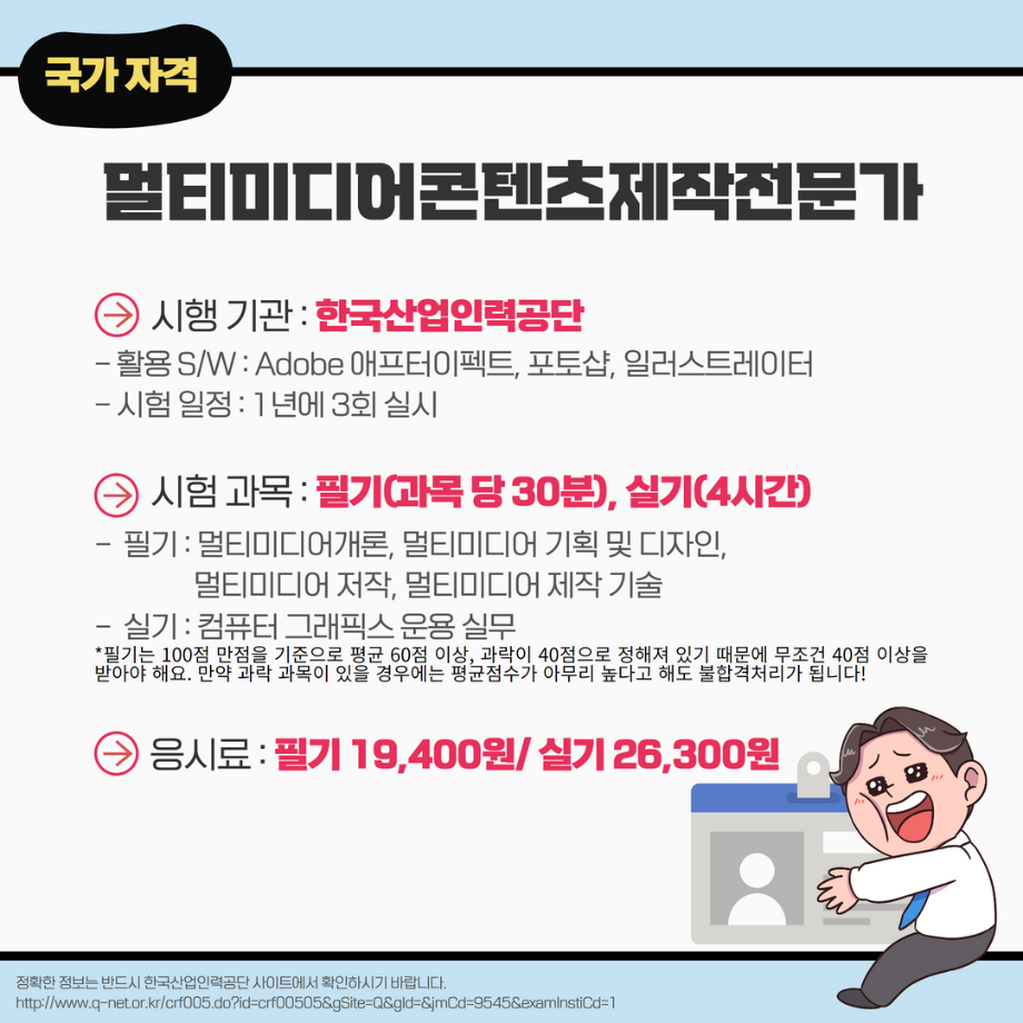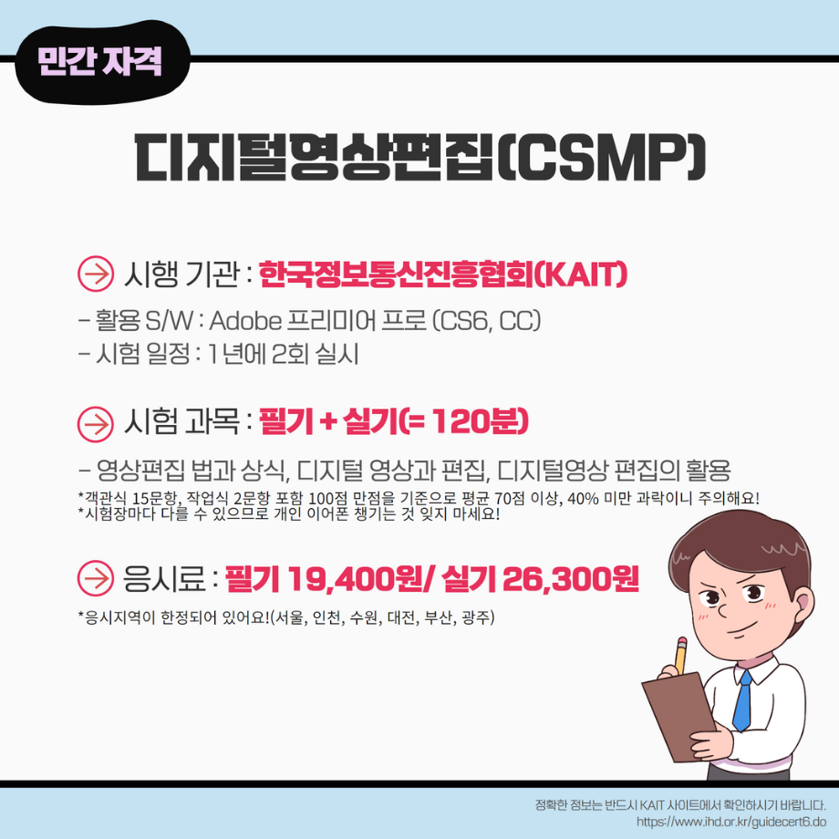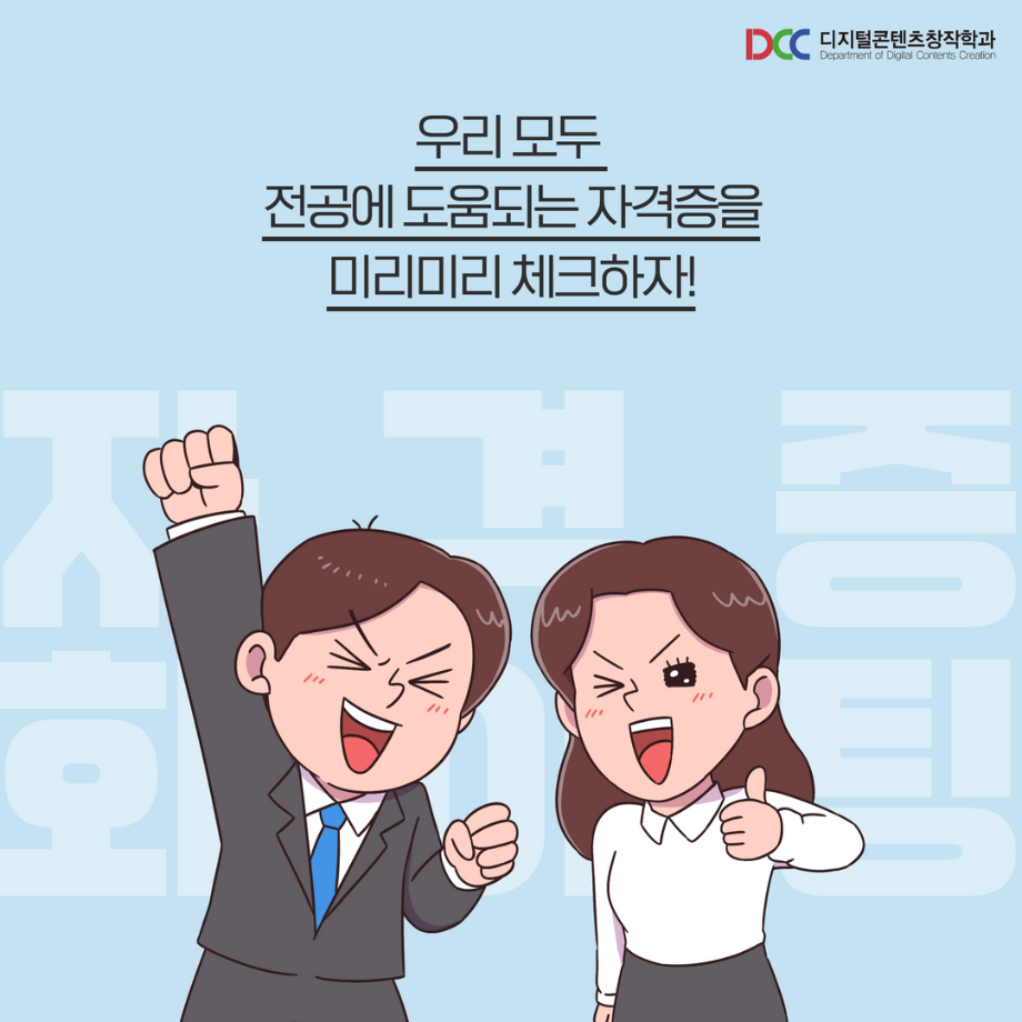 본문 시작 홈으로 MCC News 학과소개 교수소개 학과과정 MCC News MCC SNS 홈페이지가이드 학과 및 재학생 학과 및 재학생 교수 및 졸업생 미디어 정보통 학과 및 재학생 페이스북 트위터 프린트 미리 취득하면 도움 되는 자격증📝 디지털콘텐츠창작학과 4666 2023-03-14 영상, 디자인 관련 자격증을 알려드립니다! 자격증은 국제/국가/민간으로 나뉘며 총 6개의 자격증이 있습니다! 각 전공에 도움되는 자격증을 미리 확인하여 취득할 수 있는 기회를 놓치지 마세요! 목록 이전인문예술대학 특강 안내 (장정민 모델러 초청 특강) 다음 ✨디콘창 밸런스 게임✨ 담당부서 : 미디어콘텐츠창작학과 담당자 : - 연락처 : 043-649-1741 최종수정일 : 2024-10-26 만족도조사 만족도 조사 이 페이지에서 제공하는 정보에 대하여 만족하시나요? 매우만족 만족 보통 불만족 매우불만족