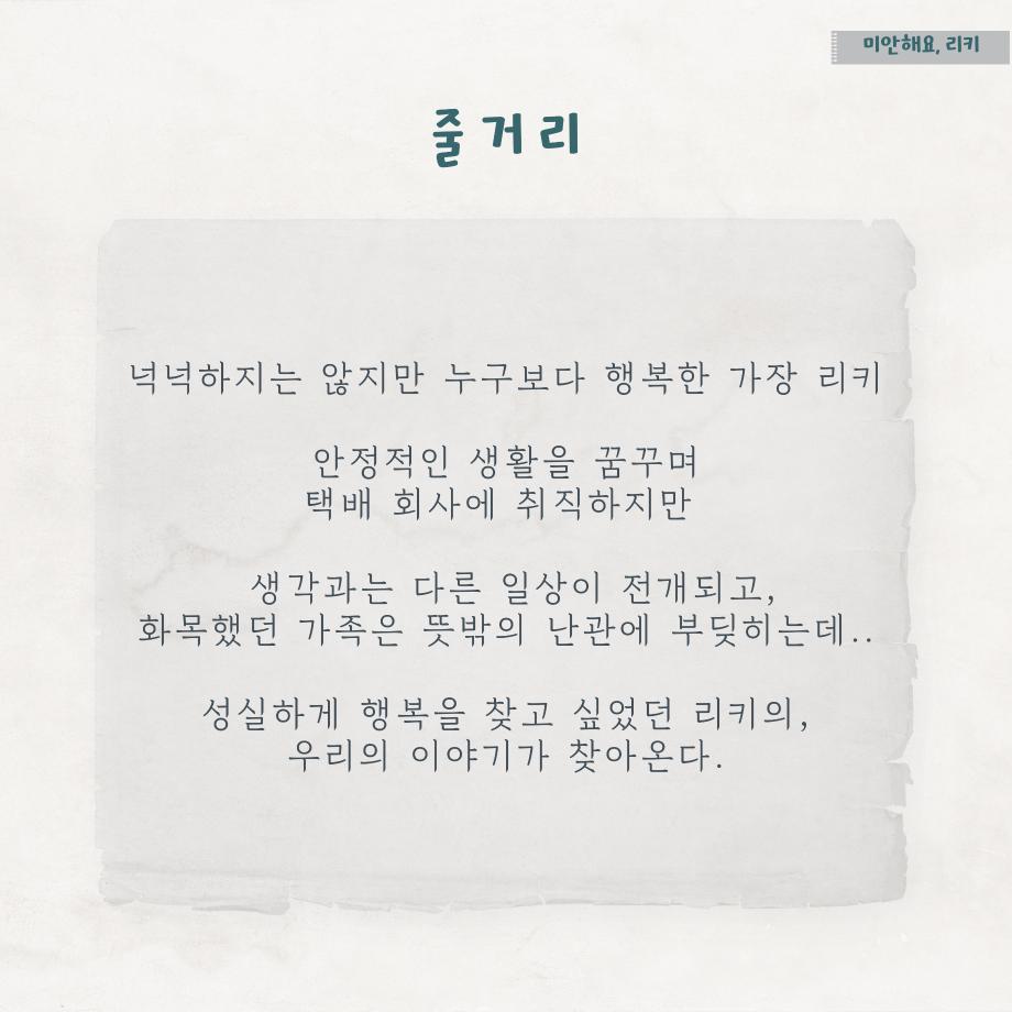 본문 시작 홈으로 MCC News 학과소개 교수소개 학과과정 MCC News MCC SNS 홈페이지가이드 학과 및 재학생 학과 및 재학생 교수 및 졸업생 미디어 정보통 학과 및 재학생 페이스북 트위터 프린트 디콘창이 추천하는 영화 추천 6선 5탄 디지털콘텐츠창작학과 4305 2023-07-21 세명대학교 디지털콘텐츠창작학과가 추천하는 영화 추천 6선 시리즈 다섯 번째입니다! 5탄의 추천 영화는 '미안해요 리키'입니다. 영화 추천 시리즈에는 추천 영화의 줄거리, 스틸컷, 감상 가능한 사이트, 교수님의 한 줄 평까지 볼 수 있습니다. 짧지만 알찬 정보는 담았으니, 다양한 장르의 추천 영화를 감상해 보시고 여러분들의 한 줄 평을 남겨주세요! 영화 추천 6선 시리즈의 마지막인 6탄도 학우분들의 많은 관심 부탁드립니다!❤ 목록 이전🍭 오늘의 디콘 18탄 🍭 다음 학생회가 알려주는 연계전공📚 담당부서 : 미디어콘텐츠창작학과 담당자 : - 연락처 : 043-649-1741 최종수정일 : 2024-10-26 만족도조사 만족도 조사 이 페이지에서 제공하는 정보에 대하여 만족하시나요? 매우만족 만족 보통 불만족 매우불만족