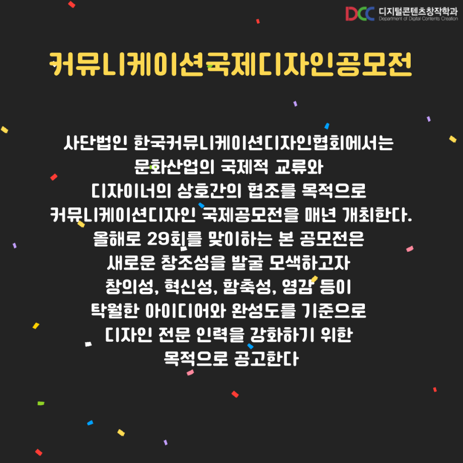 본문 시작 홈으로 MCC News 학과소개 교수소개 학과과정 MCC News MCC SNS 홈페이지가이드 학과 및 재학생 학과 및 재학생 교수 및 졸업생 미디어 정보통 학과 및 재학생 페이스북 트위터 프린트 디지털콘텐츠창작학과 재학생 커뮤니케이션 국제 디자인 공모전 수상 디지털콘텐츠창작학과 8253 2023-09-13 디지털콘텐츠창작학과 학우분들의 공모전 수상을 축하드립니다! 앞으로도 여러분들의 멋진 도전을 응원합니다! 목록 이전디지털콘텐츠창작학과, 장학금 마련을 위한 양심책방 운영 다음 디지털콘텐츠창작학과 재학생 국제 디자인트렌드 대전 수상 담당부서 : 미디어콘텐츠창작학과 담당자 : - 연락처 : 043-649-1741 최종수정일 : 2024-10-26 만족도조사 만족도 조사 이 페이지에서 제공하는 정보에 대하여 만족하시나요? 매우만족 만족 보통 불만족 매우불만족