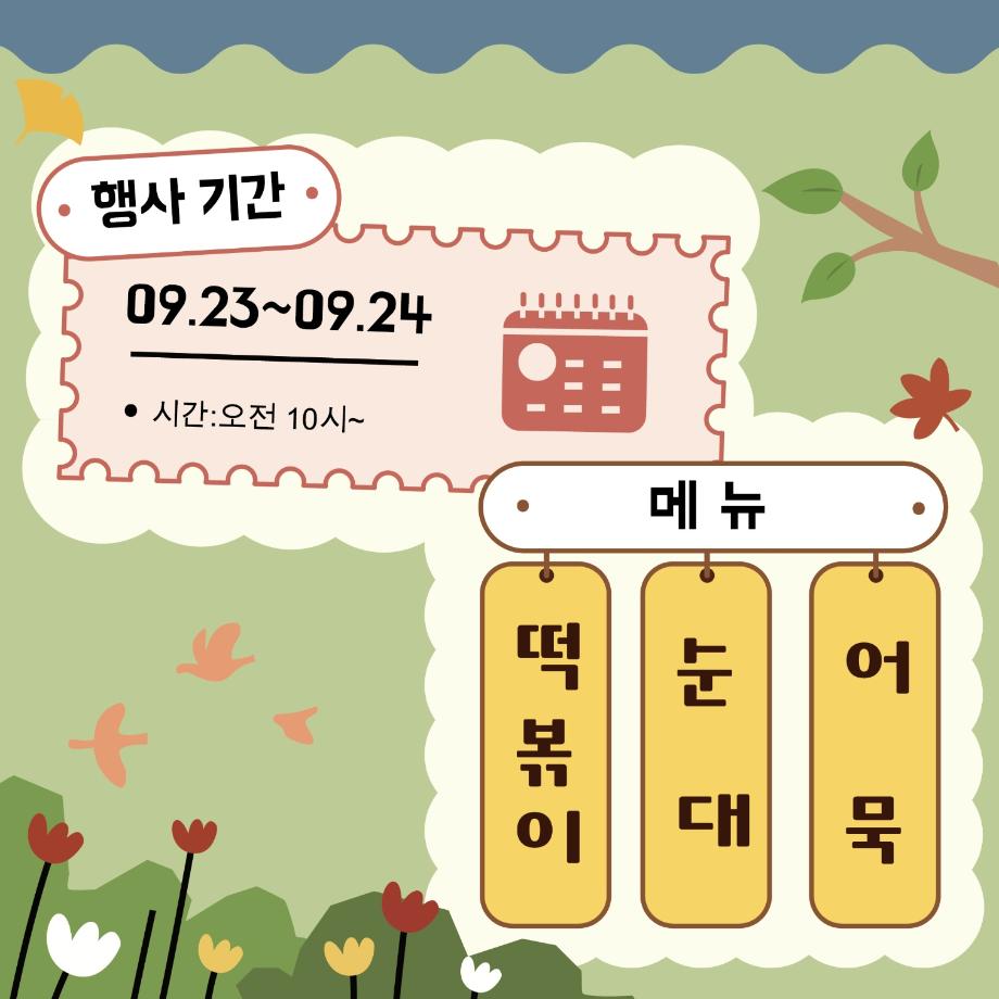 본문 시작 홈으로 MCC News 학과소개 교수소개 학과과정 MCC News MCC SNS 홈페이지가이드 학과 및 재학생 학과 및 재학생 교수 및 졸업생 미디어 정보통 학과 및 재학생 페이스북 트위터 프린트 오랜만에 찾아온 미콘먹거리! 미디어콘텐츠창작학과 2134 2024-09-23 미디어콘텐츠창작학과 학생회에서는 이번 제 32회 청룡축전이 열리는 9월23일, 24일 오전 10시부터 뭐든지 광장에서 먹거리 부스를 오픈합니다! 매콤, 짜장 떡볶이, 어묵꼬치, 순대까지 맛있는 먹거리 가득 있으니 많이 오셔서 한 입 하고 가세요!! 목록 이전2024년 추석맞이 특별 이벤트 다음 2024년도 세명대학교 인문예술대학 문화콘텐츠 창작공모전 개최 담당부서 : 미디어콘텐츠창작학과 담당자 : - 연락처 : 043-649-1741 최종수정일 : 2024-10-26 만족도조사 만족도 조사 이 페이지에서 제공하는 정보에 대하여 만족하시나요? 매우만족 만족 보통 불만족 매우불만족