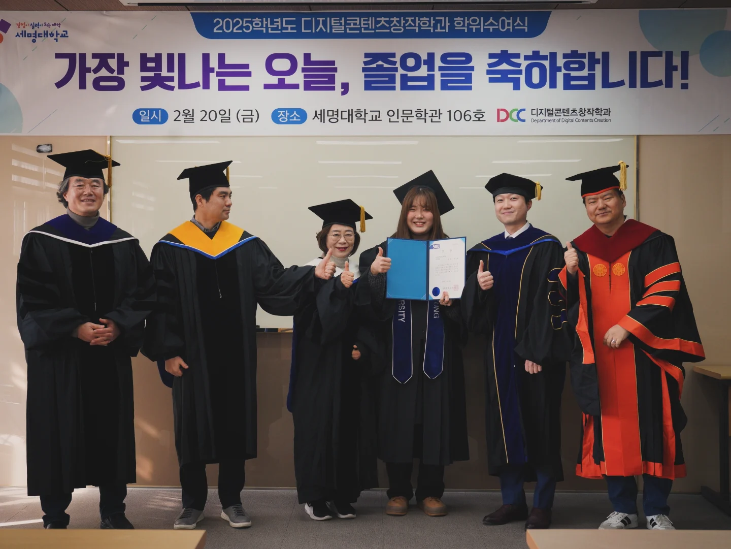 본문 시작 홈으로 MCC News 학과소개 교수소개 학과과정 MCC News MCC SNS 홈페이지가이드 학과 및 재학생 학과 및 재학생 교수 및 졸업생 미디어 정보통 학과 및 재학생 페이스북 트위터 프린트 2025학년도 디지털콘텐츠창작학과 학위수여식 미디어콘텐츠창작학과 610 2026-03-02 🎓디지털콘텐츠창작학과 학위수여식🎓 2025년을 끝으로 졸업하시는 선배님들의 학위수여식이 2026년 2월 20일 금요일 인문학관에서 진행되었습니다! 이제 인생의 첫 페이지를 넘겨 새롭고 무궁무진한 꿈을 써내려갈 멋진 선배님들의 졸업을 진심으로 축하드리며, 앞으로의 모든 날이 소설처럼 아름답기를, 저희 후배들이 열심히 응원하겠습니다!🎉😊 목록 이전미디어콘텐츠창작학과 신입생 꿈 설계학기 2일차.zip 다음 2026학년도 미디어콘텐츠창작학과 개강총회 담당부서 : 미디어콘텐츠창작학과 담당자 : - 연락처 : 043-649-1741 최종수정일 : 2024-10-26 만족도조사 만족도 조사 이 페이지에서 제공하는 정보에 대하여 만족하시나요? 매우만족 만족 보통 불만족 매우불만족
