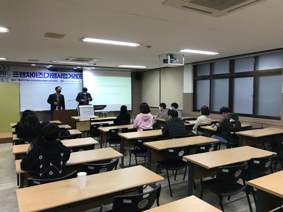본문 시작 홈으로 커뮤니티 학과안내 교수소개 학과과정 커뮤니티 홈페이지가이드 학과사진첩 공지사항 취업정보 학과사진첩 학과행사 동아리 학생회 교우소식 학과사진첩 페이스북 트위터 프린트 2021. 11. 18 염규석 박사님 특강 법학과 3073 2021-11-18 2021년 11월 18일 한국편의점산업협회 상근부회장직을 맡고 계시는 염규석 박사님을 모시고 ' 프랜차이즈(가맹사업거래)의 본질과 전망' 이라는 주제로 특강을 진행하였습니다. ※본 특강은 코로나19 방역 수칙을 준수하여 진행하였습니다.※ 목록 이전2021. 11. 18 이준길 박사님 특강 다음 2021. 11. 24 엄덕수 법무사님 특강 담당부서 : 법학과 담당자 : - 연락처 : 043-649-1764 최종수정일 : 2024-10-26 만족도조사 만족도 조사 이 페이지에서 제공하는 정보에 대하여 만족하시나요? 매우만족 만족 보통 불만족 매우불만족