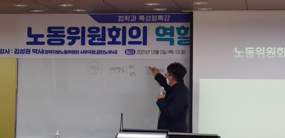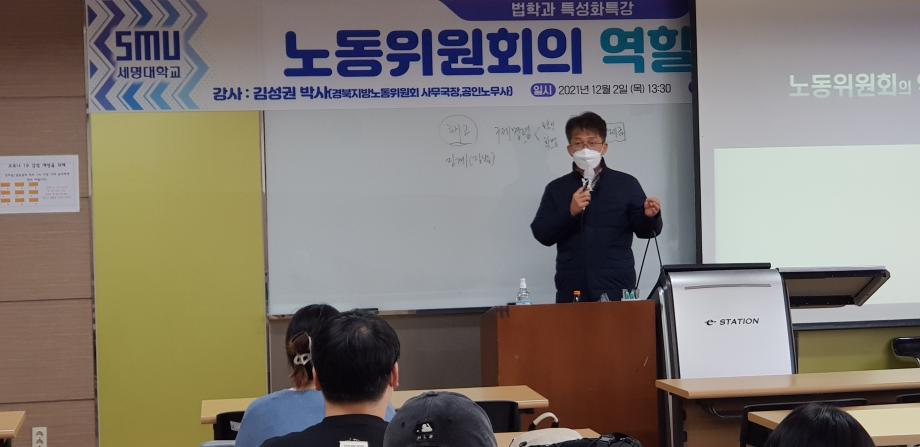 본문 시작 홈으로 커뮤니티 학과안내 교수소개 학과과정 커뮤니티 홈페이지가이드 학과사진첩 공지사항 취업정보 학과사진첩 학과행사 동아리 학생회 교우소식 학과사진첩 페이스북 트위터 프린트 2021 12. 2. 김성권 노무사님 특강 법학과 4038 2021-12-02 2021년 12월 2일 경북지방노동위원회 사무국장을 맡고 계시는 김성권 노무사님을 모시고 ' 노동위원회의 역할과 기능' 이라는 주제로 특강을 진행하였습니다. ※본 특강은 코로나19 방역 수칙을 준수하여 진행하였습니다.※ 목록 이전2021. 12. 01 로엔젤 결산 및 간담회 다음 2021 12. 3. 신변보호사 자격증(2차) 담당부서 : 법학과 담당자 : - 연락처 : 043-649-1764 최종수정일 : 2024-10-26 만족도조사 만족도 조사 이 페이지에서 제공하는 정보에 대하여 만족하시나요? 매우만족 만족 보통 불만족 매우불만족