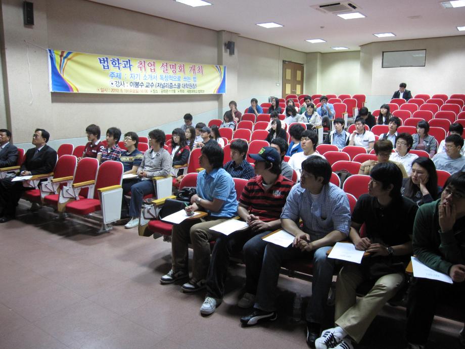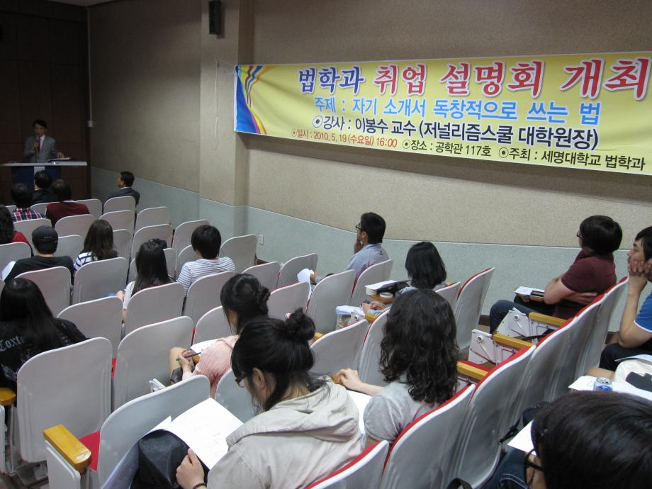 본문 시작 홈으로 커뮤니티 학과안내 교수소개 학과과정 커뮤니티 홈페이지가이드 학과사진첩 공지사항 취업정보 학과사진첩 학과행사 동아리 학생회 교우소식 학과사진첩 페이스북 트위터 프린트 법학과 취업설명회 전체관리자 6628 2010-05-20 법학과 취업설명회가 성공적으로 끝났습니다. 강사 이봉수 교수님의 독창적인 자기소개서 쓰는 법을 듣고 나서 법학과 학생들은 자기소개서 쓰는 것에 대한 자신감을 가지게 되는 계기가 되었습니다. 목록 이전이근영 교수님 멘토링 단체 환경보호 활동 및 식사간담회 다음 장성원 교수님 멘토링 단체 환경보호 활동 및 야외활동 담당부서 : 법학과 담당자 : - 연락처 : 043-649-1764 최종수정일 : 2024-10-26 만족도조사 만족도 조사 이 페이지에서 제공하는 정보에 대하여 만족하시나요? 매우만족 만족 보통 불만족 매우불만족