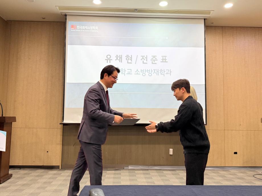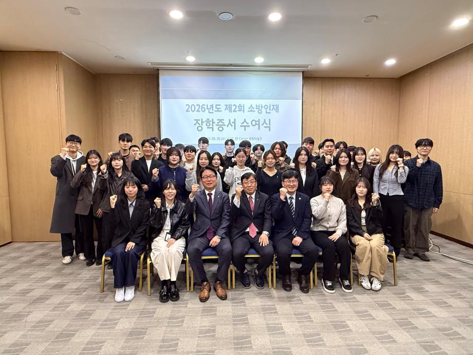 본문 시작 홈으로 커뮤니티 학과소개 교수소개 전공과정 커뮤니티 홈페이지가이드 학과행사 학과공지 채용정보 학사일정 학과행사 동아리 소방방재학과의 자랑 궁금합니다 수험생 Q&A 학과행사 페이스북 트위터 프린트 2026학년도 제2회 소방인재 장학증서 수여식 소방방재학과 13 2026-04-23 2026년 3월 25일 수요일 2026학년도 제2회 소방인재 장학증서 수여식이 진행되었습니다. 우리 학과에서는 21학번 전준표, 23학번 유채현 학생이 한국소방학회 장학생으로 선정되어 장학금을 수여하였습니다. 목록 이전2026학년도 소방방재학과 MT 담당부서 : 소방방재학과 담당자 : - 연락처 : 043-649-1787 최종수정일 : 2024-10-26 만족도조사 만족도 조사 이 페이지에서 제공하는 정보에 대하여 만족하시나요? 매우만족 만족 보통 불만족 매우불만족