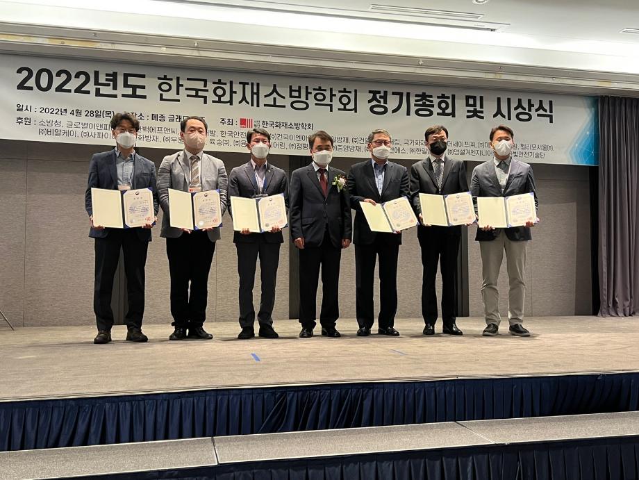 2022학년도 한국화재소방학회 춘계 학술대회에서는 소방IT 융합연구실의 최수기 학생과 건설방재 연구실의 김원창 학생이 각 세션에서 학술상 수상 대상자로 추천되는영예를 받았습니다.