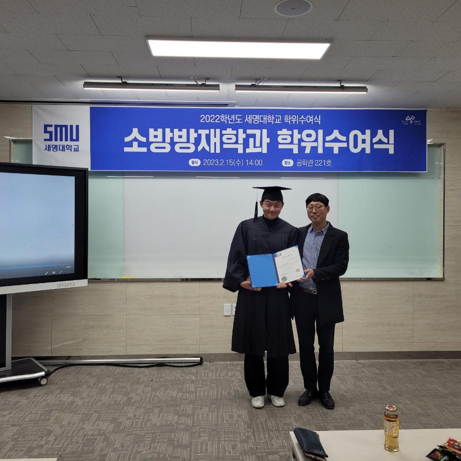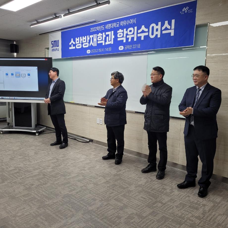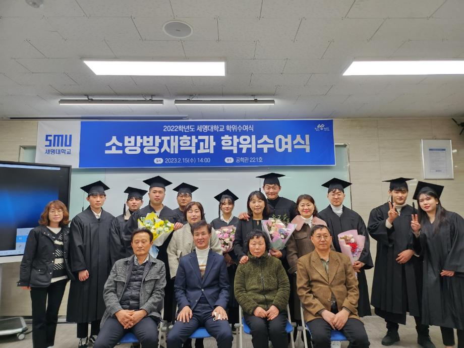 본문 시작 홈으로 커뮤니티 학과소개 교수소개 전공과정 커뮤니티 홈페이지가이드 학과행사 학과공지 채용정보 학사일정 학과행사 동아리 소방방재학과의 자랑 궁금합니다 수험생 Q&A 학과행사 페이스북 트위터 프린트 2022학년도 제29회 소방방재학과 학위수여식 소방방재학과 6732 2023-02-20 2022학년도 세명대학교 소방방재학과 학위수여식 2023년 2월 15일 수요일에 공학관 221호에서 진행되었습니다. 소방방재학과 교수님들과 졸업생, 학부모님들께서 참석하였습니다. 소방방재학과는 올해 29명의 학생들이 학사 학위를 취득하였고, 남*진 학생이 수석으로 졸업을 하였습니다. 졸업을 진심으로 축하드리며 졸업생분들의 앞날을 응원합니다. 목록 이전2023년 젠센휴즈(주) 장학금 수여식 다음 2022학년도 신입생 꿈설계학기 담당부서 : 소방방재학과 담당자 : - 연락처 : 043-649-1787 최종수정일 : 2024-10-26 만족도조사 만족도 조사 이 페이지에서 제공하는 정보에 대하여 만족하시나요? 매우만족 만족 보통 불만족 매우불만족