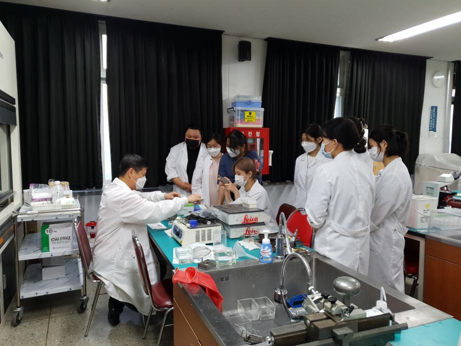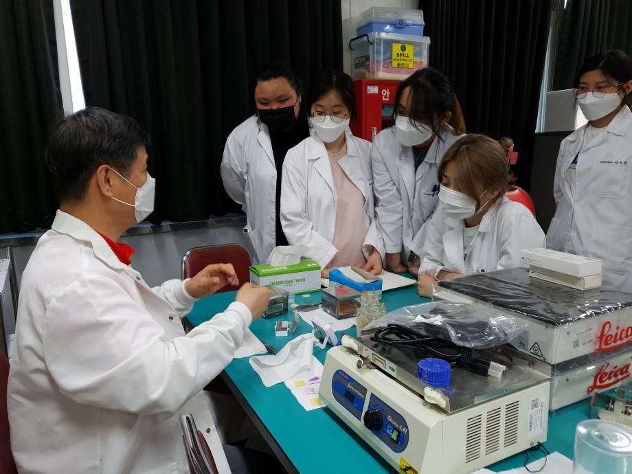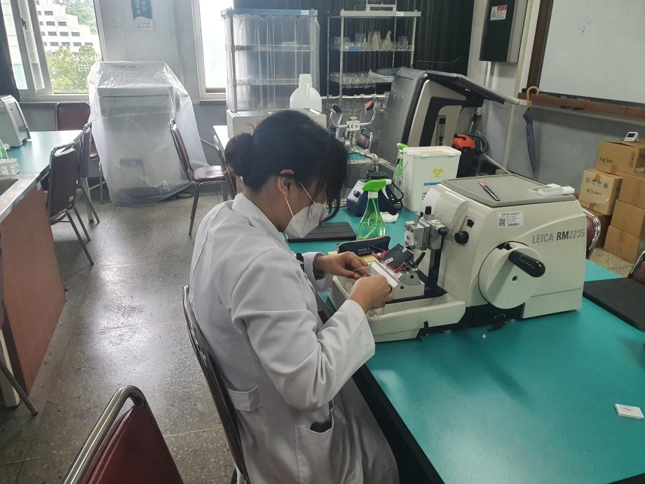 본문 시작 2021학년도 하계 방학 중 특별활동 임상병리학과 3738 2022-01-24 2021학년도 하계방학기간에 우계형 교수님 주관으로 조직처리 및 제작에 관한 심화과정을 주제로 한 특별활동을 진행하였습니다. 목록 이전2021학년도 실험동물기술원 자격취득 특별활동 다음 2021학년도 졸업생특강 담당부서 : 임상병리학과 담당자 : - 연락처 : 043-649-1537 최종수정일 : 2024-10-26 만족도조사 만족도 조사 이 페이지에서 제공하는 정보에 대하여 만족하시나요? 매우만족 만족 보통 불만족 매우불만족