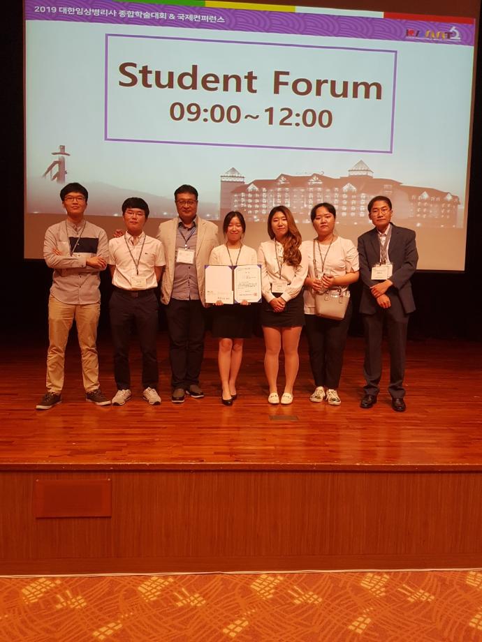 2019년 8월 31일(토) 강원도 평창 알펜시아 컨벤션센터에서 제57회 전국임상병리사 종합학술대회 “임상병리사의 업무 프론티어” 이라는 주제로 학생포럼이 개최되었다. 임상병리학과 전공동아리 세균맨(회장: 김수만, 지도교수: 김사현)이 “임상병리 업무영역 확장”라는 주제로 서화정, 변다연 학생이 발표하여 대상을 수상하였습니다. 작년 임상병리학과 창업동아리 SM Medix 금상 수상에 이은 2년 연속으로 수상하게 되었습니다. 또한 이번 수상으로 올해 일본 학회 발표에 이은 내년도 대만학회에 우리나라를 대표하여 발표할 수 있게 되었습니다. 이번 학술대회 참가를 통하여 임상병리사의 업무 다양성과 4차 산업혁명시대 임상병리사의 업무영역 확대 등 졸업 후 진로선택의 폭을 넓힐 수 있는 계기가 되었습니다.
