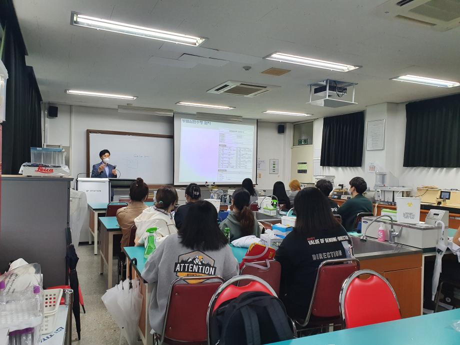 본문 시작 2021학년도 실험동물 특별활동 임상병리학과 3665 2022-01-20 2021.09.23-2021.10.01 2021학년도 2학기에 우계형 교수님 주관으로 실험동물기술원 관련 특별활동을 진행하였습니다. 방학기간에 실험동물기술원 자격증을 취득한 학생들이 직접 2학년 학생들을 대상으로 실습을 가르쳐주는 시간을 가졌습니다. 목록 이전2021학년도 동계 방학 중 특별활동 다음 2021학년도 실험동물기술원 자격취득 특별활동 담당부서 : 임상병리학과 담당자 : - 연락처 : 043-649-1537 최종수정일 : 2024-10-26 만족도조사 만족도 조사 이 페이지에서 제공하는 정보에 대하여 만족하시나요? 매우만족 만족 보통 불만족 매우불만족
