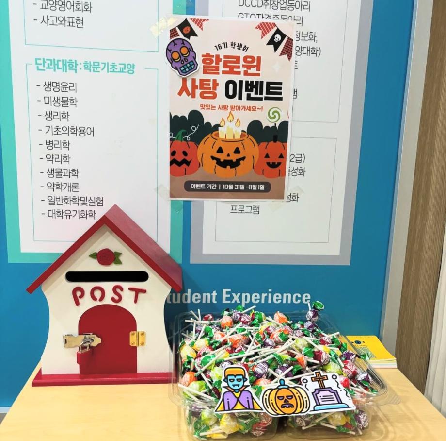 본문 시작 할로윈 사탕 이벤트 임상병리학과 3237 2024-11-02 안녕하세요! 16기 학생회입니다 ! 10월 31일 핼러윈 기념 깜짝 사탕 이벤트를 진행하였습니다! 조그만한 이벤트를 통해 학우분들께 즐거움을 드린 거 같아 매우 기쁩니다! 다음 이벤트도 많이 기대해 주세요! 목록 이전중간고사 학용품 이벤트 다음 헌혈 버스 오는 날 담당부서 : 임상병리학과 담당자 : - 연락처 : 043-649-1537 최종수정일 : 2024-10-26 만족도조사 만족도 조사 이 페이지에서 제공하는 정보에 대하여 만족하시나요? 매우만족 만족 보통 불만족 매우불만족
