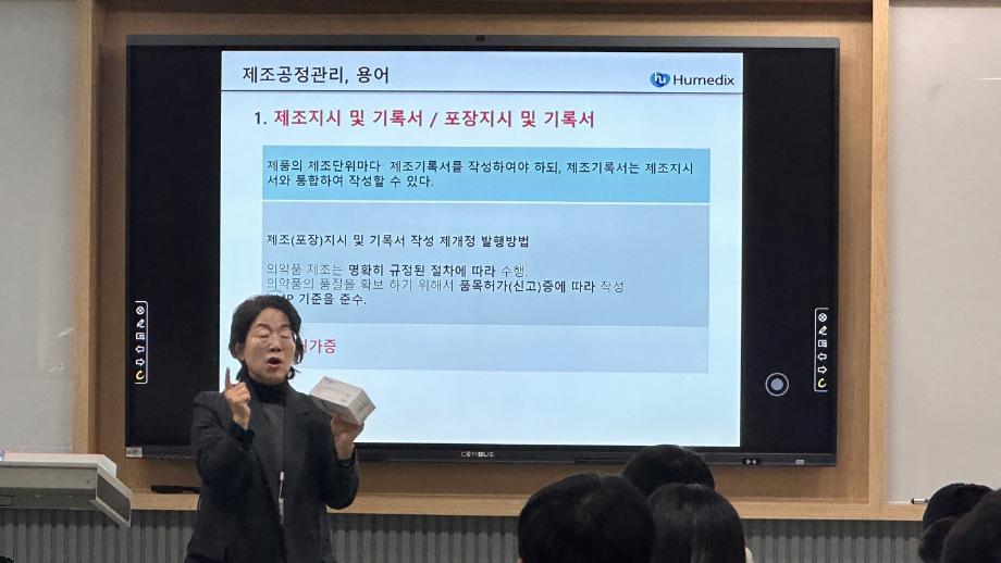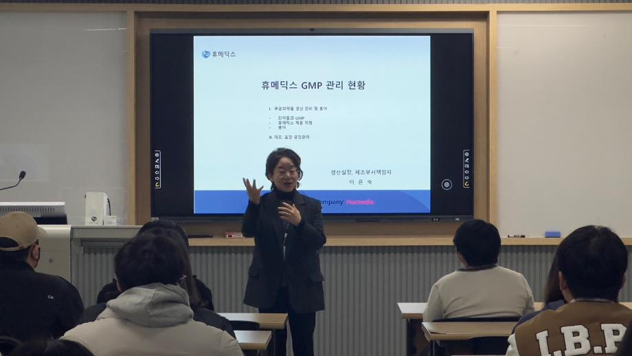 본문 시작 홈으로 학부자료실 학부소개 교육과정 학부공지게시판 학부자료실 홈페이지가이드 학부행사 및 사진게시판 학부행사 및 사진게시판 학생회 소개 학부행사 및 사진게시판 페이스북 트위터 프린트 휴메딕스 이은숙 이사 특강_현직자가 알려주는 GMP&Validation 바이오제약산업학부 3340 2023-12-08 바이오제약산업학부에서는 휴메딕스 생산실장, 제조부서책임자 이은숙 이사님을 모시고 휴메딕스 GMP 관리 현황에 대한 특강을 진행하였다. GMP가 엄격히 관리되고 있는 기업의 현황을 사례로 제약산업에서 필수적인 GMP에 대한 의미있는 교육이 진행되었다. 목록 이전휴메딕스 원상호 부장 특강_현직자가 알려주는 제약품질 관리 다음 2023학년도 전기 학위 수여식 안내 담당부서 : 바이오제약산업학부 담당자 : - 연락처 : 043-649-1729 최종수정일 : 2024-10-26 만족도조사 만족도 조사 이 페이지에서 제공하는 정보에 대하여 만족하시나요? 매우만족 만족 보통 불만족 매우불만족