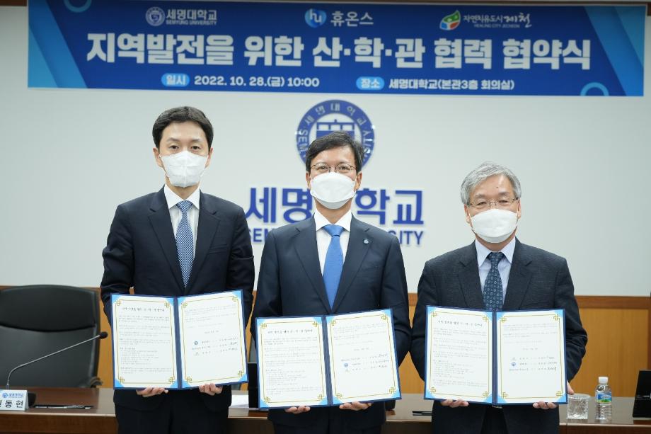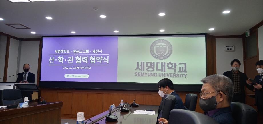 본문 시작 홈으로 학부자료실 학부소개 교육과정 학부공지게시판 학부자료실 홈페이지가이드 학부행사 및 사진게시판 학부행사 및 사진게시판 학생회 소개 학부행사 및 사진게시판 페이스북 트위터 프린트 세명대학교:휴온스 상생협력을 위한 산학관협약 체결 바이오제약산업학부 3501 2022-11-04 세명대학교(총장 권동현)와 휴온스그룹(회상 윤성태), 제천시는 28일 세명대학교 본관 대회의실에서 상생협력을 위한 산학관 협약을 체결했다. 이 자리에 직접 관련 전공인 바이오제약산업학부, 화장품뷰티학부 교수들도 함께하였다. 목록 이전한국식품영양과학회에서 포스터 발표 다음 오송첨단의료산업진흥재단 등 견학 담당부서 : 바이오제약산업학부 담당자 : - 연락처 : 043-649-1729 최종수정일 : 2024-10-26 만족도조사 만족도 조사 이 페이지에서 제공하는 정보에 대하여 만족하시나요? 매우만족 만족 보통 불만족 매우불만족
