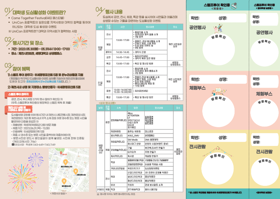본문 시작 홈으로 학부자료실 학부소개 교육과정 학부공지게시판 학부자료실 홈페이지가이드 학부행사 및 사진게시판 학부행사 및 사진게시판 학생회 소개 학부행사 및 사진게시판 페이스북 트위터 프린트 2023 대학생 도심 활성화 이벤트 바이오제약산업학부 3249 2023-05-30 2023 대학생 도심 활성화 이벤트 목록 이전토익 스파르타 300+ 신청 안내 다음 세명대학교 2023학년도 하계 표준(자율)현장실습학기제 학생 안내 담당부서 : 바이오제약산업학부 담당자 : - 연락처 : 043-649-1729 최종수정일 : 2024-10-26 만족도조사 만족도 조사 이 페이지에서 제공하는 정보에 대하여 만족하시나요? 매우만족 만족 보통 불만족 매우불만족