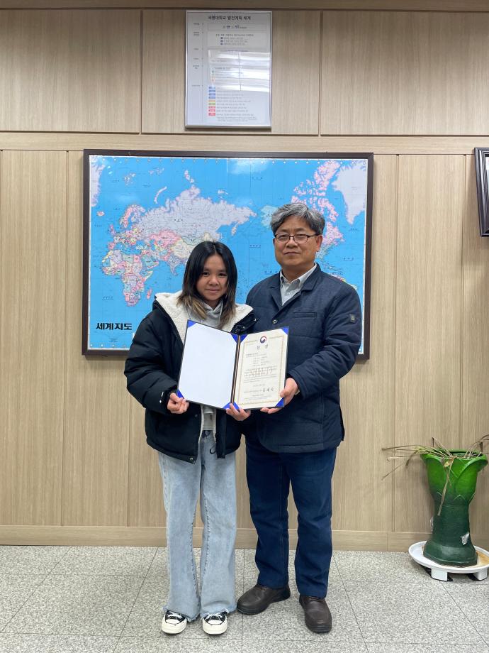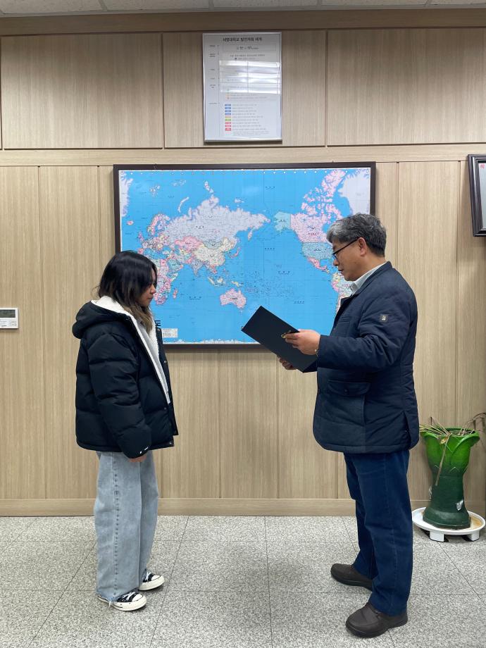 본문 시작 홈으로 학부자료실 학부소개 교육과정 학부공지게시판 학부자료실 홈페이지가이드 학부행사 및 사진게시판 학부행사 및 사진게시판 학생회 소개 학부행사 및 사진게시판 페이스북 트위터 프린트 우리학부 생 시티카(캄보디아) 국립국제교육원 원장상 수상 바이오제약산업학부 3109 2024-02-01 바이오제약산업학부 학부과정에 재학 중인 생 시티카(캄보디아)는 우수한 학업 성과를 인정받아 교육부 산하 국립국제교육원으로부터 원장상을 수상했다. 생시티카 학생은 정부초청장학생으로 2022년 세명대학교 바이오제약산업학부 입학 후 한국어능력시험(TOPIK) 6급 취득 및 우수한 학업 성적을 유지하고 있다. 국립국제교육원에서는 정부초청외국인장학사업(GKS)을 통해 초청한 외국인 장학생 중 유학 생활 성과가 우수한 학생을 매년 선정해 시상하고 있다. 목록 이전축하합니다. 권*현, 박*호 학생이 휴온스에 취업하였습니다. 다음 2024학년도 404호 강의실 리모델링 담당부서 : 바이오제약산업학부 담당자 : - 연락처 : 043-649-1729 최종수정일 : 2024-10-26 만족도조사 만족도 조사 이 페이지에서 제공하는 정보에 대하여 만족하시나요? 매우만족 만족 보통 불만족 매우불만족