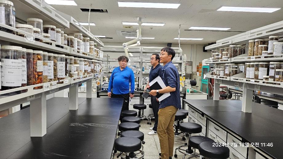 본문 시작 홈으로 학부자료실 학부소개 교육과정 학부공지게시판 학부자료실 홈페이지가이드 학부행사 및 사진게시판 학부행사 및 사진게시판 학생회 소개 학부행사 및 사진게시판 페이스북 트위터 프린트 산림청 국립산림과학원 산림약용자원연구소 연구개발 협의 바이오제약산업학부 2632 2024-07-21 2024년 7월 18일 산림청 국립산림과학원 산림약용자원연구소 김현준 연구사와 손용환박사가 바이오제약산업학부를 방문하여 진행되고 있는 과제의 점검과 향후 과제에 대한 논의를 하였다. 김현준 박사는 세명대학교 전체수석으로 졸업한 바이오제약산업학부 1회 동문으로 현재는 산림청 국립산림과학원 산림약용자원연구소에서 연구사로 근무 중이다. 목록 이전유유제약 표준현장실습 박*은 면담 다음 우리학부 동문 박지원 박사 2년 연속 한국미생물 · 생명공학회 우수 포스터발표상 수상 담당부서 : 바이오제약산업학부 담당자 : - 연락처 : 043-649-1729 최종수정일 : 2024-10-26 만족도조사 만족도 조사 이 페이지에서 제공하는 정보에 대하여 만족하시나요? 매우만족 만족 보통 불만족 매우불만족