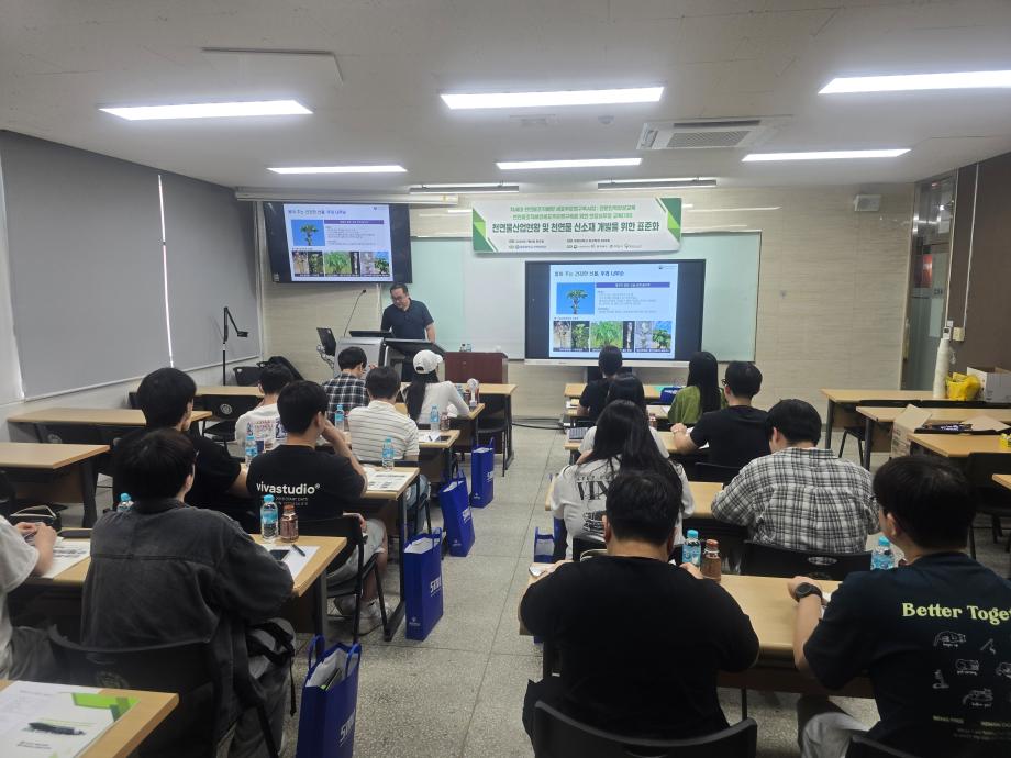 본문 시작 홈으로 학부자료실 학부소개 교육과정 학부공지게시판 학부자료실 홈페이지가이드 학부행사 및 사진게시판 학부행사 및 사진게시판 학생회 소개 학부행사 및 사진게시판 페이스북 트위터 프린트 바이오제약산업학부 현장 실무형 교육 바이오제약산업학부 1593 2025-07-17 2025년 7월8일(화) 이공학관 402호에서 쳔연물조직배양 세포주은행 구축을 위한 현장실무형 교육이 있었습니다. 김현준박사님(국립산림과학원)과 양병욱교수님(오산대)께서 ‘천연물산업현황과 천연물 신소재 개발을 위한 표준화’ 라는 주제로 강의를 해 주셨습니다. 중요한 산림 자원과 천연물 신소재 개발 과정을 이해하는 뜻 깊은 시간이었습니다. 목록 이전바이오제약산업학부 2025년 MT 다음 바이오제약산업학부 2025년 여름방학 특별활동 실습 담당부서 : 바이오제약산업학부 담당자 : - 연락처 : 043-649-1729 최종수정일 : 2024-10-26 만족도조사 만족도 조사 이 페이지에서 제공하는 정보에 대하여 만족하시나요? 매우만족 만족 보통 불만족 매우불만족