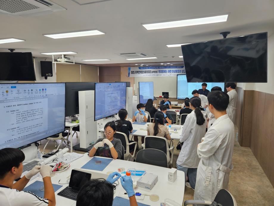 본문 시작 홈으로 학부자료실 학부소개 교육과정 학부공지게시판 학부자료실 홈페이지가이드 학부행사 및 사진게시판 학부행사 및 사진게시판 학생회 소개 학부행사 및 사진게시판 페이스북 트위터 프린트 바이오제약산업학부 지역연계 창의 융합 캠프 바이오제약산업학부 2324 2025-07-24 2025년 7월23일(화) 이공학관 404호에서 1일차 지역연계 창의융합캠프가 열렸습니다. 바이오제약산업학부 신용국교수님께서 제천지역 중학교 3학년 학생들과 함께 이틀간 ‘우리 몸에는 어떤 미생물이 살고 있을까?’라는 주제로 강의와 미생물관찰 실습을 진행합니다. 바이오제약산업학부는 지역 학생들의 과학에 대한 관심을 고양하고 진로를 선택하는데 도움을 주고자 합니다. 목록 이전바이오제약산업학부 여름방학 특별활동 다음 바이오제약산업학부 GC-MS 및 LC-MS 실습을 통한 의약품 및 천연물소재 분석 교육 담당부서 : 바이오제약산업학부 담당자 : - 연락처 : 043-649-1729 최종수정일 : 2024-10-26 만족도조사 만족도 조사 이 페이지에서 제공하는 정보에 대하여 만족하시나요? 매우만족 만족 보통 불만족 매우불만족