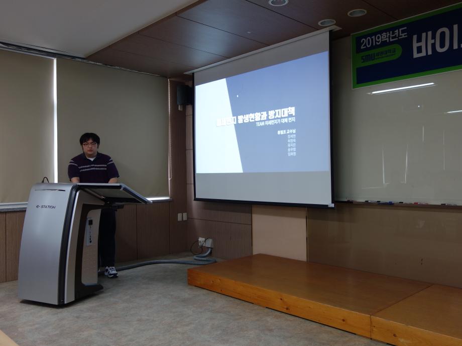 본문 시작 홈으로 커뮤니티 학과소개 교수소개 학과과정 커뮤니티 홈페이지가이드 학과활동 및 행사 학과공지 채용정보 학과활동 및 행사 전공자료실 동아리 학과활동 및 행사 페이스북 트위터 프린트 2019 캡스톤 디자인 최종 발표회 바이오환경공학과 6048 2019-06-12 바이오환경공학과는 6월 12일 (수) 오후 2:30에 4학년 졸업예정자들을 대상으로 하는 「바이오환경캡스톤디자인 성과발표회」를 실시하였습니다. 목록 이전2019학년도 청룡체전 다음 2019학년도 진로-진학박람회 담당부서 : 환경에너지학과 담당자 : - 연락처 : 043-649-1337 최종수정일 : 2024-10-26 만족도조사 만족도 조사 이 페이지에서 제공하는 정보에 대하여 만족하시나요? 매우만족 만족 보통 불만족 매우불만족