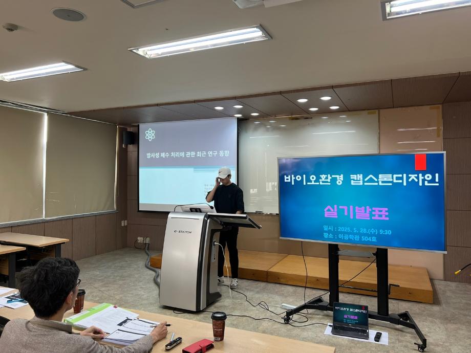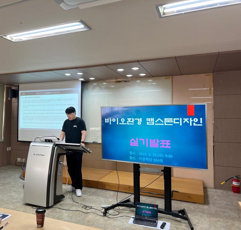본문 시작 홈으로 커뮤니티 학과소개 교수소개 학과과정 커뮤니티 홈페이지가이드 학과활동 및 행사 학과공지 채용정보 학과활동 및 행사 전공자료실 동아리 학과활동 및 행사 페이스북 트위터 프린트 2025학년도 바이오환경공학과(환경에너지학과) 캡스톤디자인 최종발표회 개최 환경에너지학과 1396 2025-05-28 4학년 졸업논문과 연계한 '바이오환경캡스톤디자인' 최종 발표회가 개최되었습니다. 1. 일시 : 2025.05.28.(수). 9:30 2. 장소 : 이공학관 504호 학과 지도교수님의 지도로 총 2개팀의 발표와 질의응답이 있었습니다. 발표의 주제는 다음과 같습니다. 1) 방사성 폐수 처리에 관한 최근 연구 동향 (지도교수 : 최석순) 2) 국내 환경분야의 딥러닝 기법 적용 사례조사 (지도교수 : 윤석표) 한 학기 동안 졸업논문 발표 준비한 4학년 학생들과 지도교수님 모두 수고 많으셨습니다. 목록 이전환경에너지학과/재난안전학과 단체 봉사 실시 다음 바이오환경실무체험 학술특강 1차 실시 담당부서 : 환경에너지학과 담당자 : - 연락처 : 043-649-1337 최종수정일 : 2024-10-26 만족도조사 만족도 조사 이 페이지에서 제공하는 정보에 대하여 만족하시나요? 매우만족 만족 보통 불만족 매우불만족