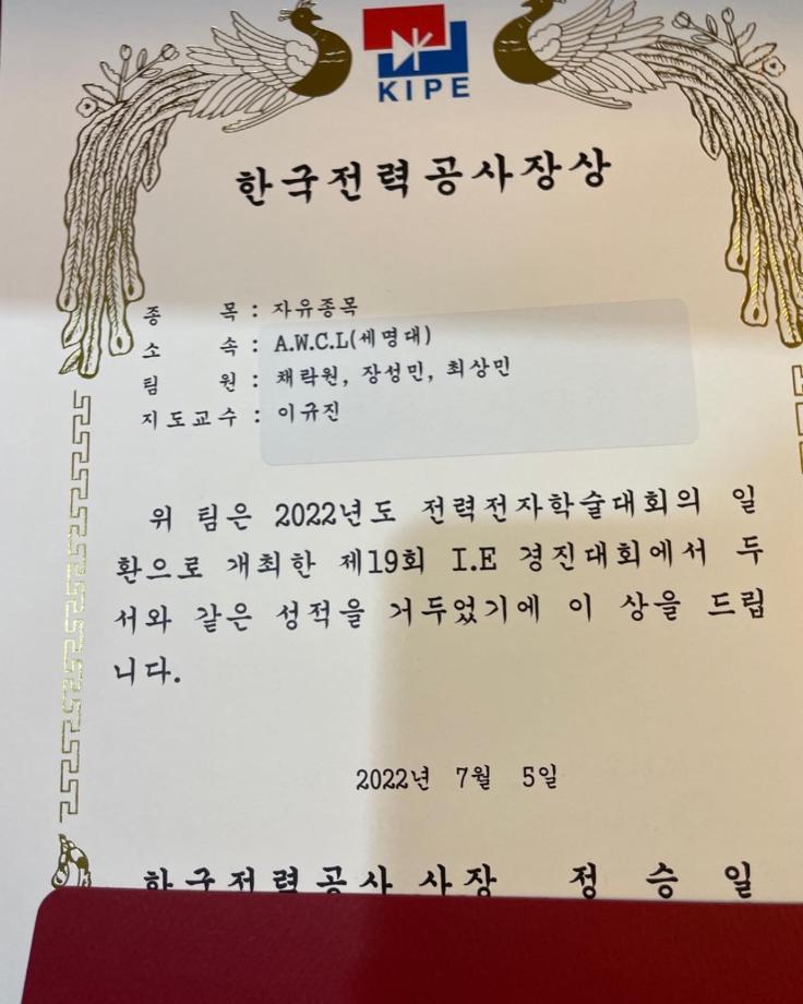 본문 시작 홈으로 커뮤니티 학과소개 교육과정 학과활동 커뮤니티 진로취업 입학상담 홈페이지가이드 포토갤러리 학과공지 포토갤러리 자유게시판 동영상 게시판 포토갤러리 페이스북 트위터 프린트 2022년 제19회 I.E(Intelligent Electronics)경진대회 수상 전자공학과 2682 2022-07-09 전자공학과 차세대무선통신동아리는 7/5일 경주에서 열린 전력전자학술대회에 참가하였습니다. 지정작품으로 ‘태양열과 열전소자를 이용한 에너지순환 스마트팜’과 자유작품으로 ‘가시광 통신을 이용한 실내 휠체어’ 주제로 참가하였습니다. 수상으로는 한국전력공사장상을 했습니다. 이 대회 참가로 전자공학에 대한 보는 눈이 더 넓어졌고 세명대학교의 이름을 알릴 수 있는 귀중한 시간이였습니다. 목록 이전ORCAD 특강 마무리 다음 제천제일고등학교 특강 1일차 (나의 앱 만들기 아두이노 앱) 담당부서 : 전자공학과 담당자 : - 연락처 : 043-649-1683 최종수정일 : 2024-10-26 만족도조사 만족도 조사 이 페이지에서 제공하는 정보에 대하여 만족하시나요? 매우만족 만족 보통 불만족 매우불만족