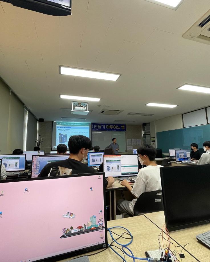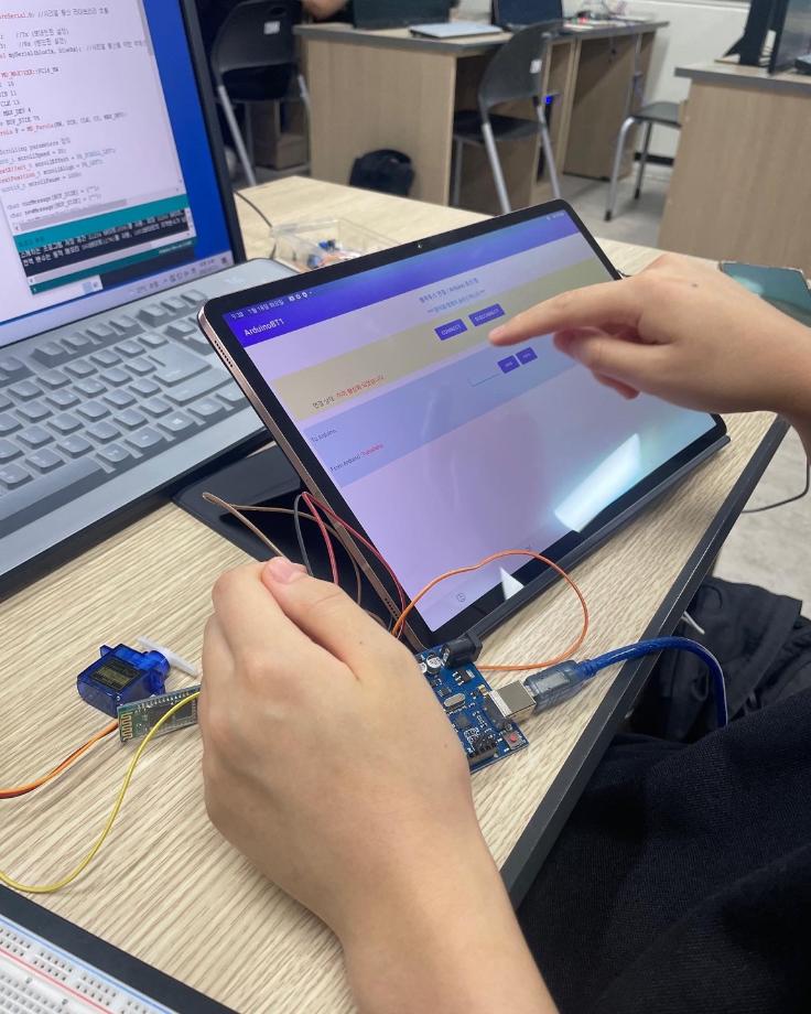 본문 시작 홈으로 커뮤니티 학과소개 교육과정 학과활동 커뮤니티 진로취업 입학상담 홈페이지가이드 포토갤러리 학과공지 포토갤러리 자유게시판 동영상 게시판 포토갤러리 페이스북 트위터 프린트 제천제일고등학교 특강 3일차 (나의 앱 만들기 아두이노 앱) 전자공학과 2907 2022-07-12 7/11일 제일고등학교 학생들을 대상으로 ‘나의 앱 만들기 아누이노 앱’ 특강 3일차를 진행했습니다. 3일차에는 각 센서를 어플을 이용하여 제어하였습니다. 각자 태블릿을 지급하여 직접 어플을 만드는 시간이였습니다. 목록 이전제천제일고등학교 특강 2일차 (나의 앱 만들기 아두이노 앱) 다음 제천제일고등학교 특강 4일차 (나의 앱 만들기 아두이노 앱) 담당부서 : 전자공학과 담당자 : - 연락처 : 043-649-1683 최종수정일 : 2024-10-26 만족도조사 만족도 조사 이 페이지에서 제공하는 정보에 대하여 만족하시나요? 매우만족 만족 보통 불만족 매우불만족