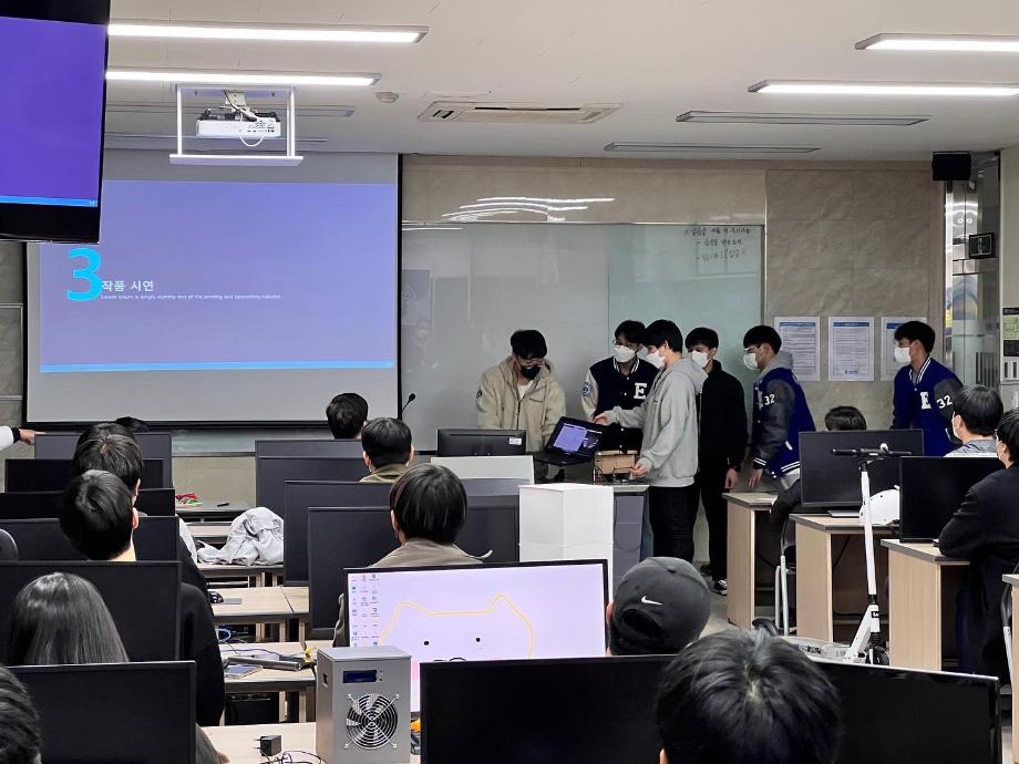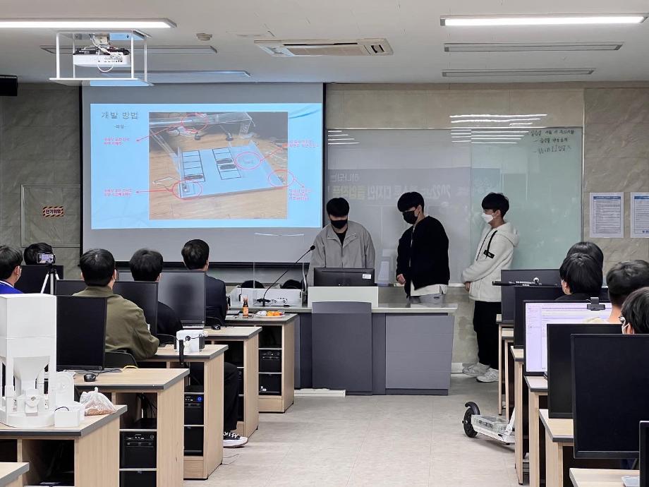 본문 시작 홈으로 커뮤니티 학과소개 교육과정 학과활동 커뮤니티 진로취업 입학상담 홈페이지가이드 포토갤러리 학과공지 포토갤러리 자유게시판 동영상 게시판 포토갤러리 페이스북 트위터 프린트 2022년 캡스톤 디자인 졸업작품 발표회 전자공학과 3432 2022-11-21 2022년도 캡스톤 디자인 졸업작품 발표회를 11/16일에 진행했습니다. 총 6개의 팀이 참가하여 각 팀별로 만든 작품을 발표하는 시간을 가졌습니다. 이번 캡스톤 디자인 졸업작품 발표회는 특별하게 참가팀 모두 최초로 통과하여 졸업 요건을 얻는 성적을 거두었습니다. 참가팀 모두 수고하셨습니다! 목록 이전2023년도 학회장 선거 다음 국제학술대회 ICCAS와 KAIS 한국산학기술학회 추계학술대회 참가 담당부서 : 전자공학과 담당자 : - 연락처 : 043-649-1683 최종수정일 : 2024-10-26 만족도조사 만족도 조사 이 페이지에서 제공하는 정보에 대하여 만족하시나요? 매우만족 만족 보통 불만족 매우불만족