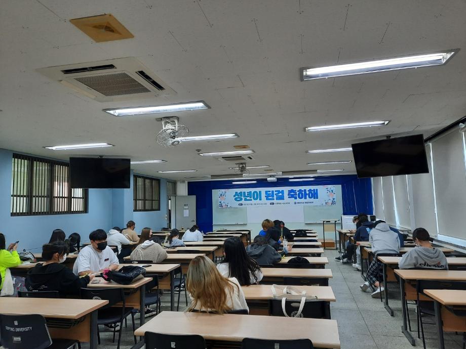 본문 시작 홈으로 커뮤니티 학부소개 전공 소개 학사안내 커뮤니티 홈페이지가이드 사진게시판 공지사항 취업정보 사진게시판 학부자료실 학부 학생회 학부소식 사진게시판 페이스북 트위터 프린트 2021학년도 성년의 날 행사 국제언어문화학부 9830 2021-05-14 2021년 성년이 된 1학년 친구들을 축하하기 위해 성년의 날 행사를 진행하였습니다. 진짜 성인이 된 친구들을 위해 장미꽃을 주고 맛있는 식사를 하였습니다. 진정한 성인으로써 앞으로 펼쳐질 미래를 응원합니다! 목록 이전2021학년도 국제언어문화학부 신입생환영회 담당부서 : 국제언어문화학부 담당자 : - 연락처 : 043-649-1761 최종수정일 : 2024-10-26 만족도조사 만족도 조사 이 페이지에서 제공하는 정보에 대하여 만족하시나요? 매우만족 만족 보통 불만족 매우불만족
