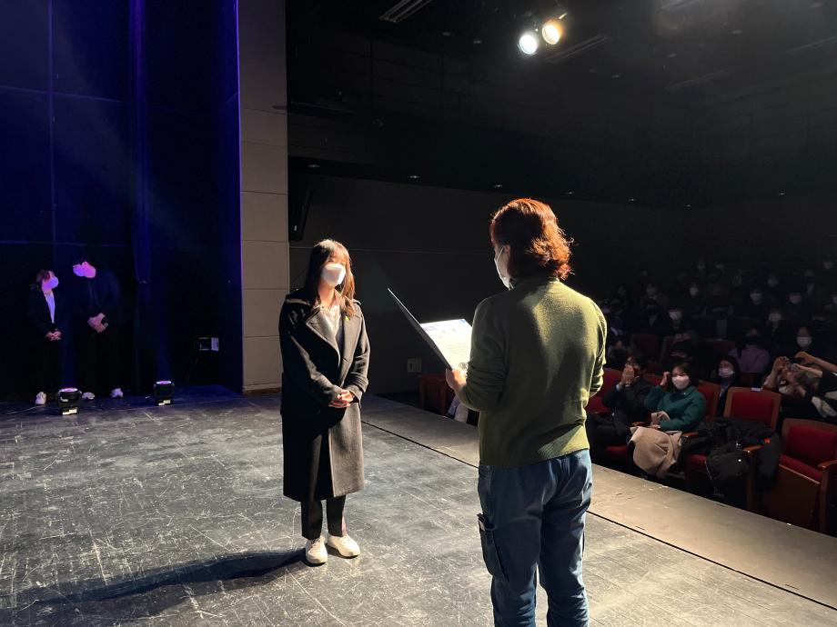 본문 시작 홈으로 커뮤니티 학과소개 교수소개 학과과정 커뮤니티 작품DB 서울대학로 민송아트홀 홈페이지가이드 사진자료실 학과공지 전공자료실 사진자료실 사진자료실 페이스북 트위터 프린트 2021학년도 2학기 종강총회 공연영상학과 2532 2021-12-10 2021학년도 종강총회가 무사히 마무리 되었습니다. 한해동안 학과를 위해 힘써주신 많은 교수님들과 열심히 달려와준 학생들에게 감사의 말씀을 전합니다. 내년에는 더욱 발전한 세명대학교 연기예술학과로 거듭나기위해 최선을 다하겠습니다! 목록 이전2021학년도 2학기 극장 스텝교육 다음 현대차그룹 대학 연극.뮤지컬 페스티벌 수상 학교 공연 온라인 중계 담당부서 : 공연영상학과 담당자 : - 연락처 : 043-649-1429 최종수정일 : 2024-10-26 만족도조사 만족도 조사 이 페이지에서 제공하는 정보에 대하여 만족하시나요? 매우만족 만족 보통 불만족 매우불만족