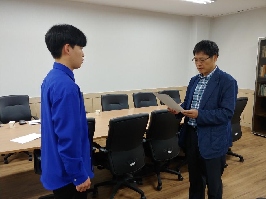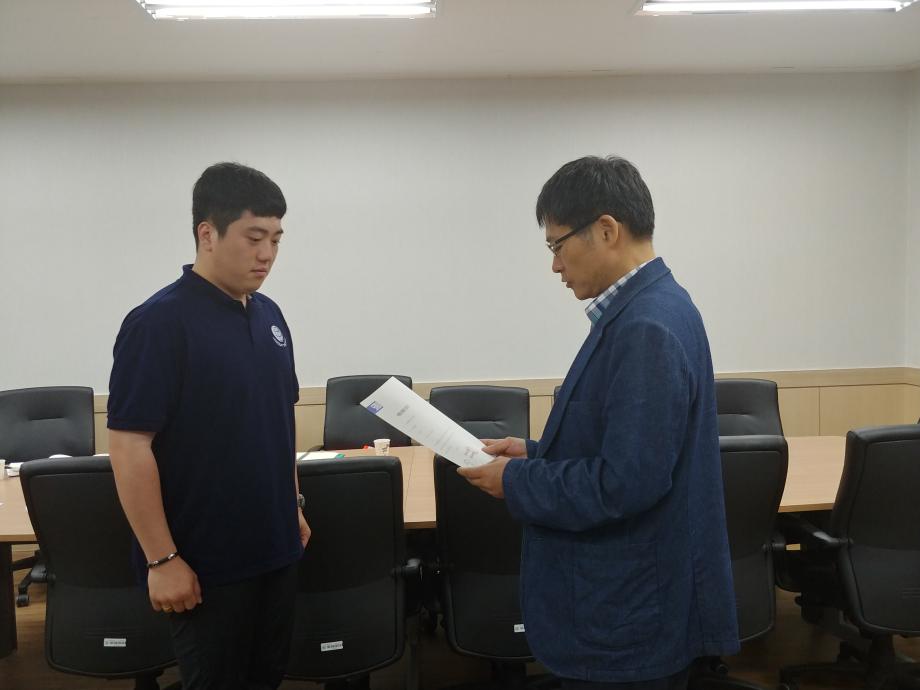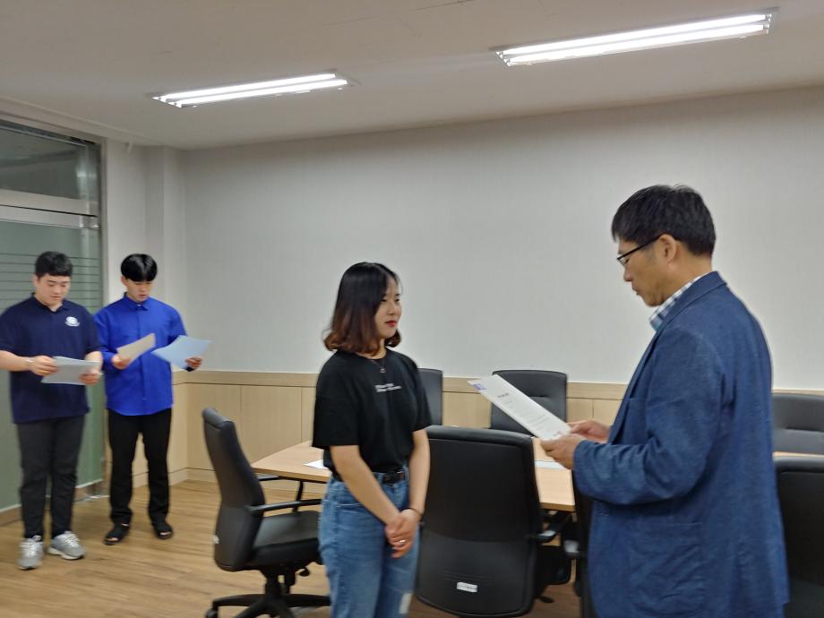 본문 시작 홈으로 커뮤니티 대학소개 학과소개 입학안내 커뮤니티 홈페이지가이드 포토갤러리 대학소식 자료실 포토갤러리 포토갤러리 페이스북 트위터 프린트 2018학년도 사회과학대학 학생모니터링단 임명장 수여 사회과학대학 6292 2018-05-16 2018학년도 사회과학대학 학생모니터링단 임명장 수여 2018학년도 사회과학대학 학생모니터링단 임명장 수여식이 있었습니다. 학생모니터링단은 사회과학대학 학생들의 불편한 시설, 학사제도 등을 조사하여 개선안을 제안하는 활동을 합니다. 학생모니터링단에 선발 된 학생들을 축하하며 활발한 활동을 기대하겠습니다. <선발학생> -글로벌경영학부 박상건 -경찰공공행정학부 이재서 -광고홍보학과 신주아 목록 이전제2회 사회과학대학 토론대회 설명회 다음 제2회 사회과학대학 토론대회 현장스케치.1 담당부서 : 사회과학대학 담당자 : - 연락처 : 043-649-7412 최종수정일 : 2024-10-26 만족도조사 만족도 조사 이 페이지에서 제공하는 정보에 대하여 만족하시나요? 매우만족 만족 보통 불만족 매우불만족