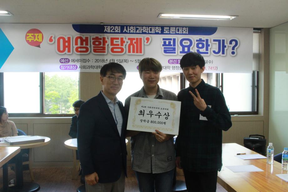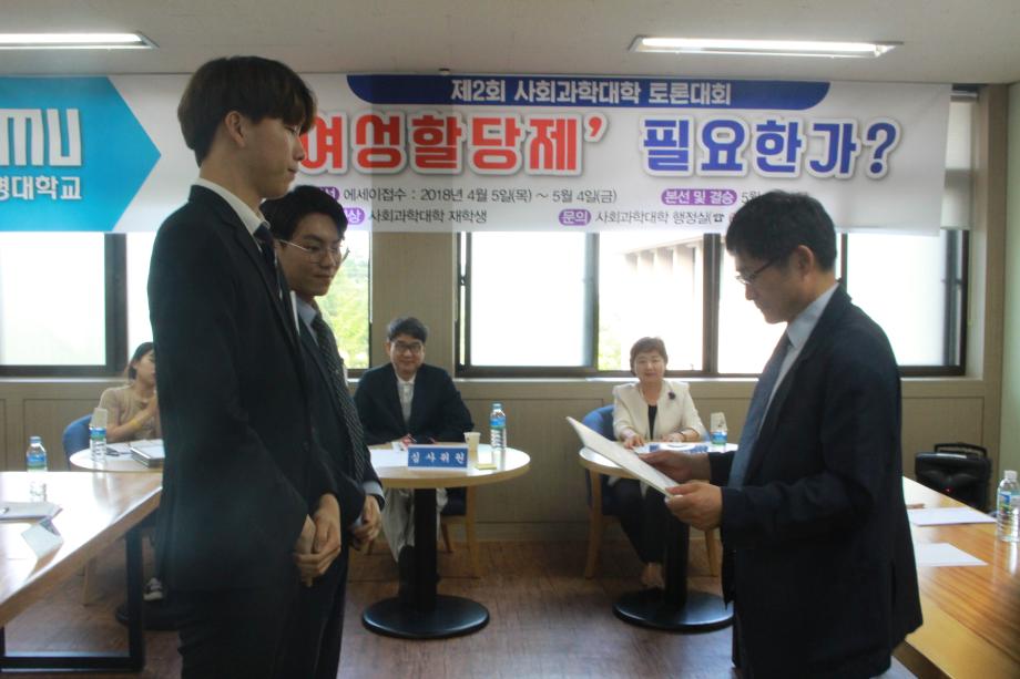 본문 시작 홈으로 커뮤니티 대학소개 학과소개 입학안내 커뮤니티 홈페이지가이드 포토갤러리 대학소식 자료실 포토갤러리 포토갤러리 페이스북 트위터 프린트 제2회 사회과학대학 토론대회 시상식 사회과학대학 6073 2018-05-30 열띤 토론 끝에 호텔관광경영학과의 ‘최종병기’ 팀이 최우수상을 수상했습니다. 최우수상 수상팀에게 직접 상장 수여를 하시기 위해 대회장을 찾아주신 이용걸 총장님께 감사드립니다. 이것으로 제2회 사회과학대학 토론대회가 성황리에 마쳤습니다. 대회 지원을 위해 도와주신 교직원 여러분과 토론대회에 참여해주신 많은 학생들께 진심으로 감사드립니다. 목록 이전제2회 사회과학대학 토론대회 현장스케치2 다음 2018학년도 사회과학대학 취업특화프로그램 설명회 담당부서 : 사회과학대학 담당자 : - 연락처 : 043-649-7412 최종수정일 : 2024-10-26 만족도조사 만족도 조사 이 페이지에서 제공하는 정보에 대하여 만족하시나요? 매우만족 만족 보통 불만족 매우불만족
