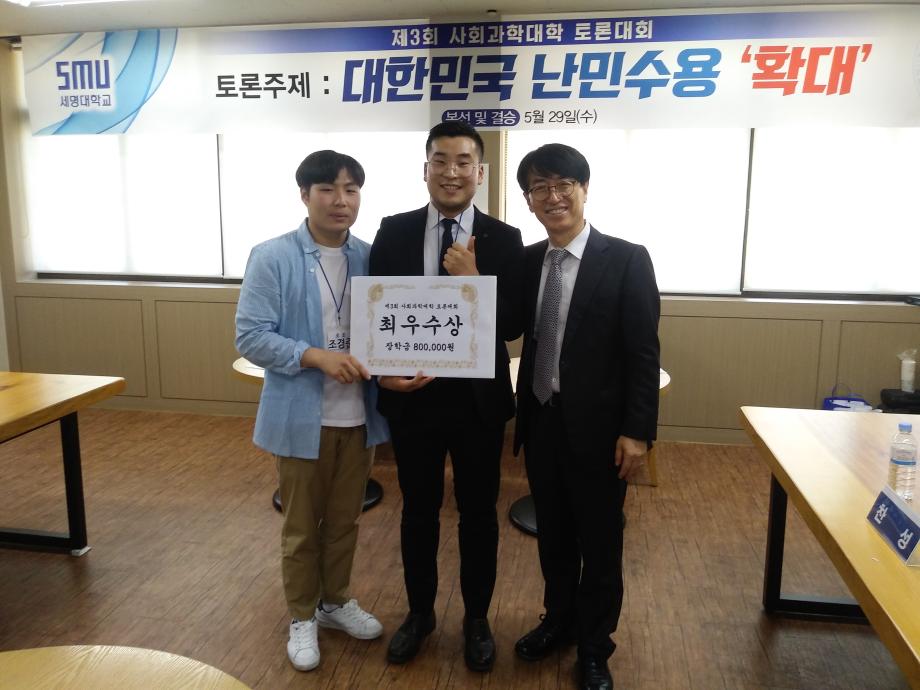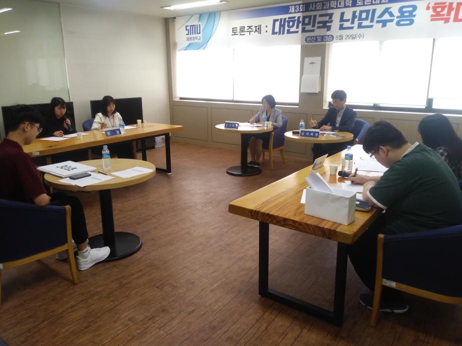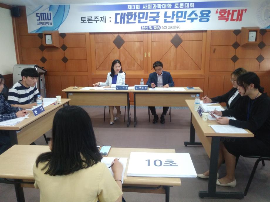 2019년 5월 29일 사회과학관 404호 406호에서 예선참가팀 24개팀중 7개의 팀이 본선진출하여 대한민국의 난민수용 확대라는 주제를 가지고 뜨거운 토론대회가 진행되었습니다.  결승전에는  행정학과 (행포자팀) 광고홍보학과(조조팀)이 올라 수준높은 토론이 진행되었고 광고홍보학과(조조팀)이 우승하게되었습니다. 결승전에는 총장님도 함께하셔 더욱 의미있는 자리가되었습니다.