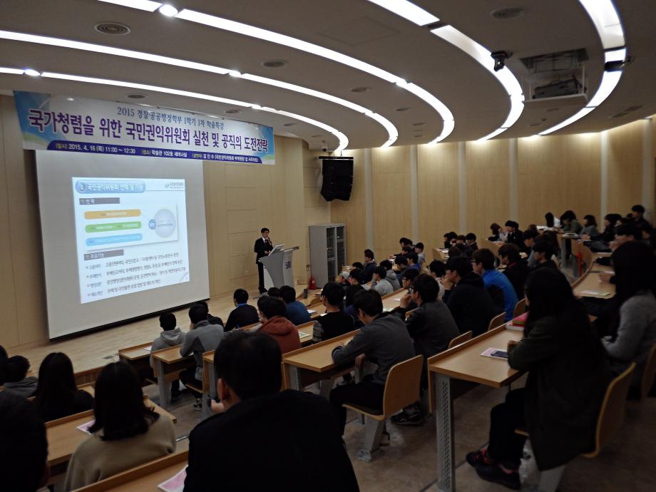 본문 시작 홈으로 커뮤니티 학부소개 교수소개 학부과정 커뮤니티 홈페이지가이드 포토갤러리 학부공지 채용정보 학부일정 포토갤러리 전공자료실 학생회 동아리 포토갤러리 페이스북 트위터 프린트 2015학년도 경찰공공행정학부 학술특강 전체관리자 15422 2015-08-07 2015학년도 경찰공공행정학부 학술특강 국민권익위원회 김인수 부위원장님을 모시고 '국가청렴을 위한 국민권익위원회 실천전략 및 공직의 도전' 이라는 주제로 특강을 진행하였습니다. 목록 이전2015학년도 신입생 오리엔테이션 다음 2015학년도 청룡체전 담당부서 : 경찰공공행정학부 담당자 : - 연락처 : 043-649-1457 최종수정일 : 2024-10-26 만족도조사 만족도 조사 이 페이지에서 제공하는 정보에 대하여 만족하시나요? 매우만족 만족 보통 불만족 매우불만족