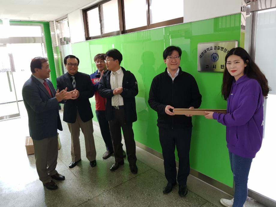 세명대학교 경찰공공행정학부(학부장 최기남교수)는 최근 경찰고시반 실원 학생들의 학습 편의 향상을 위하여 개인별 책상용 스탠드를 구매 ,전달하였습니다.