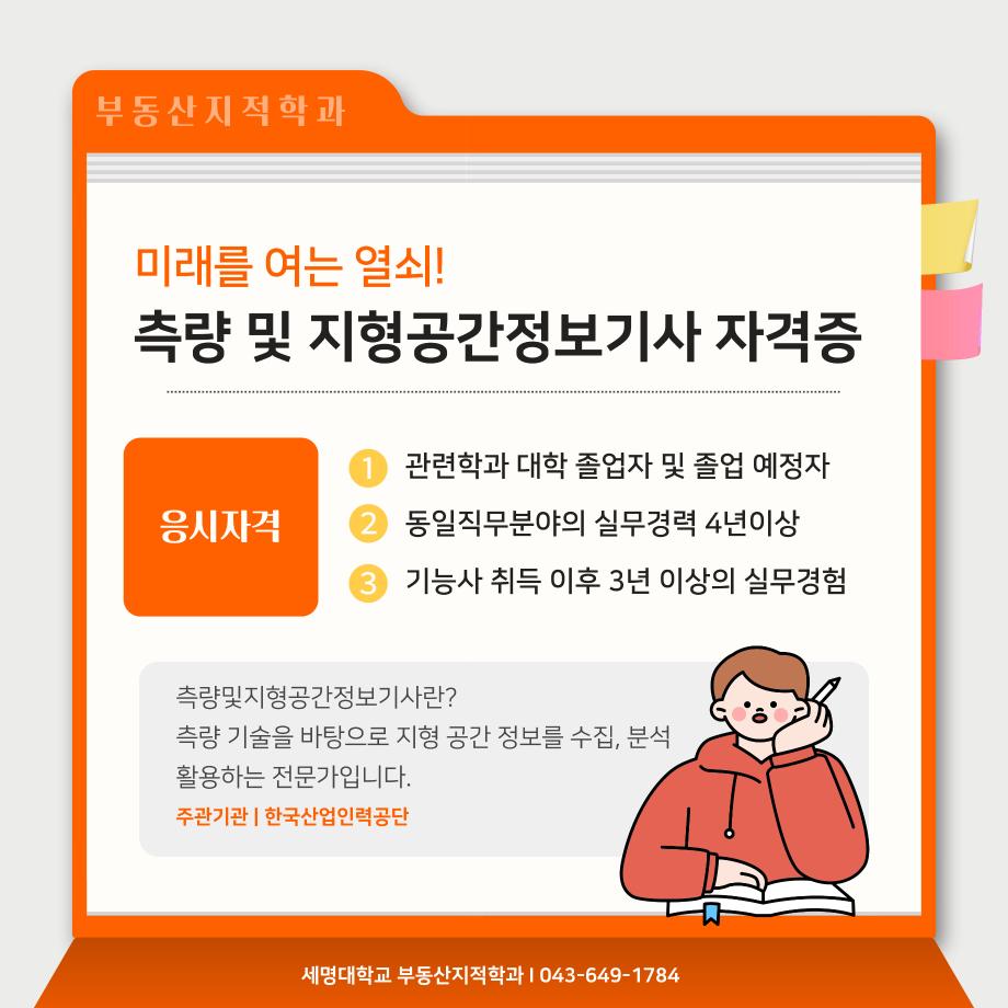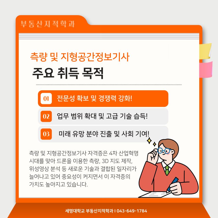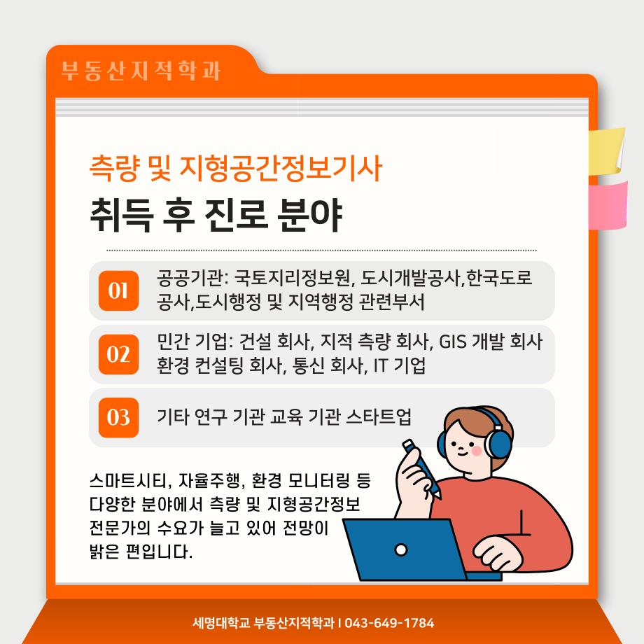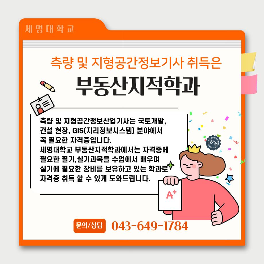 본문 시작 홈으로 학과 소식 학과소개 취업 및 진로 언론 및 보도 학과 소식 대학원 홈페이지가이드 행사사진게시판 행사사진게시판 공지사항 일반자료실 강의자료실 부동산학보 동아리 행사사진게시판 페이스북 트위터 프린트 측량 및 지형공간정보기사 소개카트 부동산지적학과 2458 2024-12-09 측량 및 지형공간정보기사 소개입니다. 측량 및 지형공간정보기사에 관심있는 학생들은 참고하여 주세요. 목록 이전자산관리사 소개 카드입니다. 다음 (주)올포랜드와 1억5천 상당 소프트웨어 현물기부 협약체결 담당부서 : 부동산지적학과 담당자 : - 연락처 : 043-649-1784 최종수정일 : 2024-10-26 만족도조사 만족도 조사 이 페이지에서 제공하는 정보에 대하여 만족하시나요? 매우만족 만족 보통 불만족 매우불만족