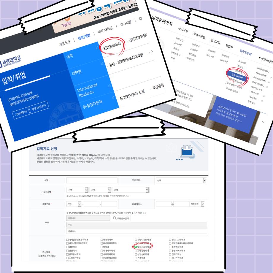 2024학년도 수시모집 원서접수 기간은 2023년 9월 11일(월)부터 2023년 9월 15일(금)까지 진행됩니다. 이에 앞서 학생분들께서 저희 학과의 입학자료를 받아볼 수 있는 방법을 안내드리겠습니다.