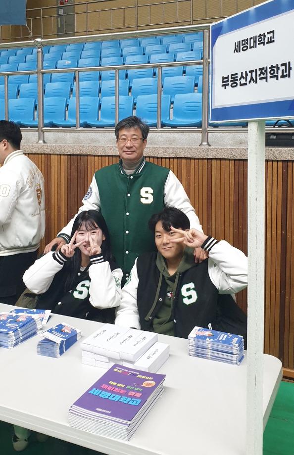 콘서트에서 세명대학교 홍보/상담부스를 운영하였는데 부동산지적학과 권기욱학과장님과 부동산지적학과 재학생들이