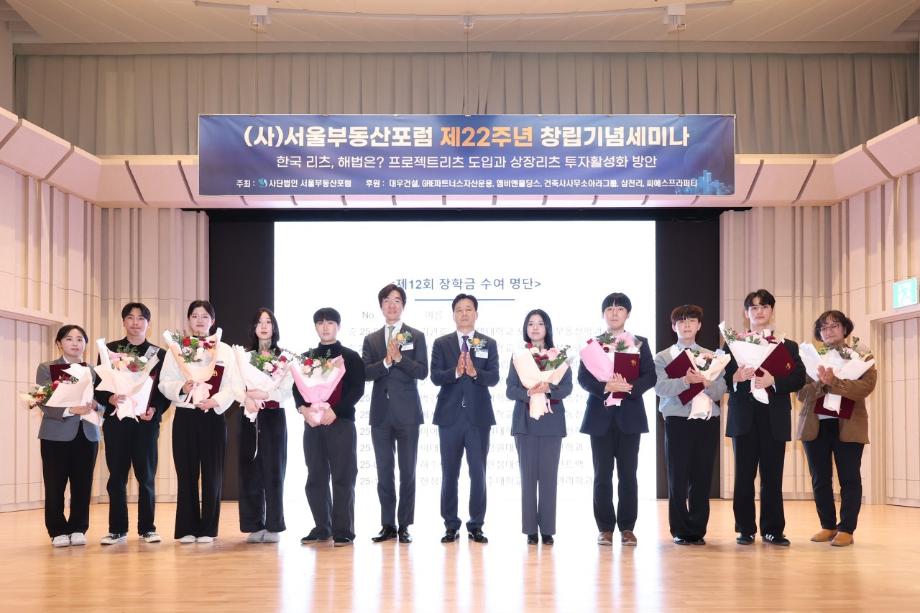 본문 시작 홈으로 학과 소식 학과소개 취업 및 진로 언론 및 보도 학과 소식 대학원 홈페이지가이드 행사사진게시판 행사사진게시판 공지사항 일반자료실 강의자료실 부동산학보 동아리 행사사진게시판 페이스북 트위터 프린트 제12회 서울부동산포럼 부동산지적학과 김관호 학생 장학생 선발 부동산지적학과 697 2025-11-07 행사명 : 제12회 서울부동산포럼 부동산학과 김관호 학생 장학생 선발 일시 : 2025.11.06. (목요일) 13:30 ~16:30 내용 : 부동산지적학과 3학년 김관호 학생이 서울부동산포럼에서 주관하는 '장학생'으로 선발되었습니다. 성실하게 학업과 학교생활에 임해온 학생은 이번 선발로 장학금 100만 원을 수여받았습니다. 학과는 장학생 선발을 진심으로 축하하며, 앞으로도 학업과 다양한 활동에 매진할 것을 응원합니다. 작성자: 부동산지적학과 조교 목록 다음 2025학년도 부동산컨설팅 특강 다음 2025년 2학기 도시경제부동산 대학원 종강모임 담당부서 : 부동산지적학과 담당자 : - 연락처 : 043-649-1784 최종수정일 : 2024-10-26 만족도조사 만족도 조사 이 페이지에서 제공하는 정보에 대하여 만족하시나요? 매우만족 만족 보통 불만족 매우불만족