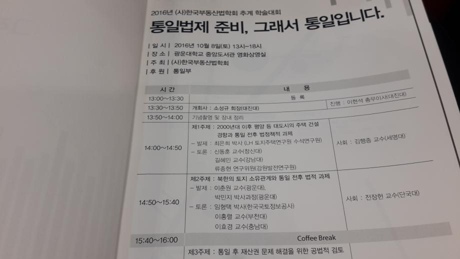 본문 시작 홈으로 학과 소식 학과소개 취업 및 진로 언론 및 보도 학과 소식 대학원 홈페이지가이드 행사사진게시판 행사사진게시판 공지사항 일반자료실 강의자료실 부동산학보 동아리 행사사진게시판 페이스북 트위터 프린트 2016년 (사)한국부동산법학회 추계 학술대회 참가 전체관리자 8694 2016-10-09 2016년 (사)한국부동산법학회 추계 학술대회 참가 일시: 2016.10.8(토) 13:00 -18:00 장소: 광운대학교 중앙도서관 영화상영실 주최: (사)한국부동산법학회 후원: 통일부 주제: 통일법제 준비, 그래서 통일입니다. 참가자: 김행종 교수 제1주제 사회자 목록 다음 제14회 한중일 거주문제 국제회의 현장답사 이전2016학년도 2학기 책임지도교수제 행사 개최 담당부서 : 부동산지적학과 담당자 : - 연락처 : 043-649-1784 최종수정일 : 2024-10-26 만족도조사 만족도 조사 이 페이지에서 제공하는 정보에 대하여 만족하시나요? 매우만족 만족 보통 불만족 매우불만족