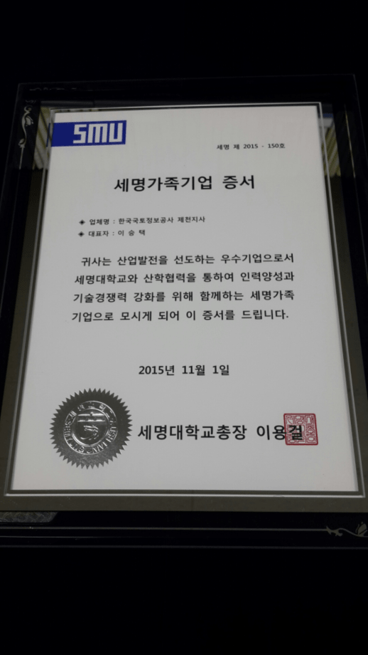 본문 시작 홈으로 학과 소식 학과소개 취업 및 진로 언론 및 보도 학과 소식 대학원 홈페이지가이드 행사사진게시판 행사사진게시판 공지사항 일반자료실 강의자료실 부동산학보 동아리 행사사진게시판 페이스북 트위터 프린트 한국국토정보공사 제천지사 세명가족기업 방문홍보 전체관리자 9478 2015-11-17 한국국토정보공사 제천지사 세명가족기업 방문홍보 일시: 2015년 11월 17일 14:00 장소: 한국국토정보공사 제천지사장실 참석자: 이승택 지사장, 김행종 교수 등 주요내용: 현장실습, 인턴사원 등 협력지원 참고사항: 한국국토정보공사(구 대한지적공사)와 본교는 2008년 10월 14일 산학협동 협정을 체결함 목록 다음 제21회 부동산 전문가 초청 특강개최 이전금상수교수님 취업특강 사진입니다! 담당부서 : 부동산지적학과 담당자 : - 연락처 : 043-649-1784 최종수정일 : 2024-10-26 만족도조사 만족도 조사 이 페이지에서 제공하는 정보에 대하여 만족하시나요? 매우만족 만족 보통 불만족 매우불만족