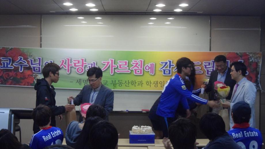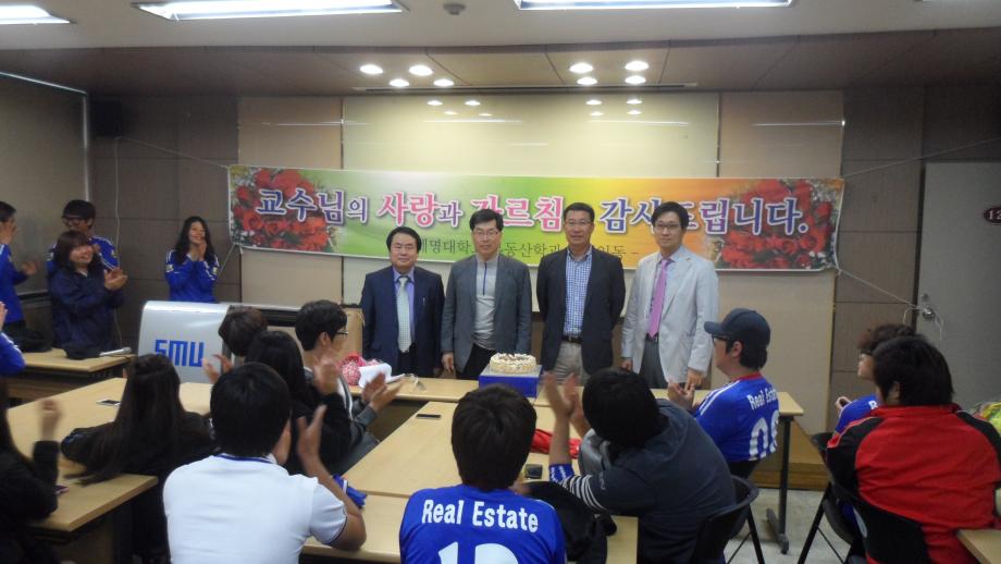 본문 시작 홈으로 학과 소식 학과소개 취업 및 진로 언론 및 보도 학과 소식 대학원 홈페이지가이드 행사사진게시판 행사사진게시판 공지사항 일반자료실 강의자료실 부동산학보 동아리 행사사진게시판 페이스북 트위터 프린트 부동산학과 스승의날 행사 전체관리자 7437 2012-05-21 2012년 5월 17일(목) 저녁4시부터 "스승의 날 행사"를 사회과학관 122호,123호에서 개최하였다. 이날 학과 교수님(김행종, 권기욱, 김상진, 백민석 교수님)과 조교 선생님, 재학생 전원이 참석한 가운데, "스승의 은혜" 와 정성스레 준비한 꽃다발, 교수님께 드리는 글, 선물 증정식, 케익자르기, 감사의 축배(세부주), 치킨, 피자 등 뜻있고 의미있는 감사의 시간을 가졌다. ♥ 교수님!!! 사랑합니다.!!! 목록 이전지역개발은 이렇게!!! 이전우리사회의 문제? 담당부서 : 부동산지적학과 담당자 : - 연락처 : 043-649-1784 최종수정일 : 2024-10-26 만족도조사 만족도 조사 이 페이지에서 제공하는 정보에 대하여 만족하시나요? 매우만족 만족 보통 불만족 매우불만족