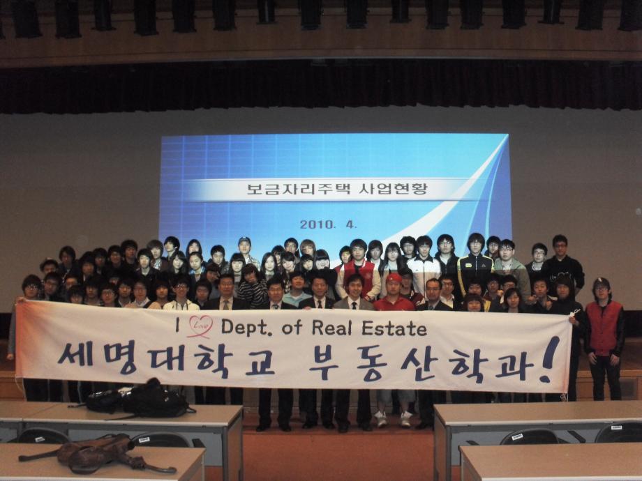 본문 시작 홈으로 학과 소식 학과소개 취업 및 진로 언론 및 보도 학과 소식 대학원 홈페이지가이드 행사사진게시판 행사사진게시판 공지사항 일반자료실 강의자료실 부동산학보 동아리 행사사진게시판 페이스북 트위터 프린트 2010년 부동산학과 LH공사(토지주택공사) 방문 전체관리자 7398 2010-04-27 2010년 부동산학과 토지주택공사 현장교육 실시 세명대학교 부동산학과(학과장 : 김행종 교수)는 2010년 4월 27일(화) 재학생 90여명과 교수3명이 토지주택공사(성남시 분당구 정자동)를 방문하였다. 이날 방문에서는 토지주택공사 관계자의 "보금자리주택 사업 현황"과 "토지주택박물관", "화성 동탄 신도시 개발"에 대한 브리핑을 들을수 있었다. 목록 이전2010년 부동산학과 LH공사(토지주택공사) 방문 이전2010학년도 학생회 임명장 수여 담당부서 : 부동산지적학과 담당자 : - 연락처 : 043-649-1784 최종수정일 : 2024-10-26 만족도조사 만족도 조사 이 페이지에서 제공하는 정보에 대하여 만족하시나요? 매우만족 만족 보통 불만족 매우불만족