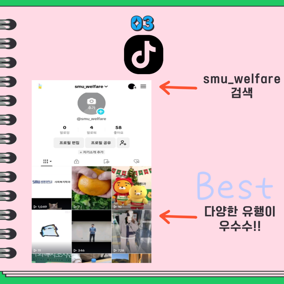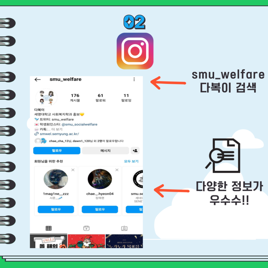 본문 시작 홈으로 커뮤니티 학과소개 교수소개 교육과정 현장실습 및 취업정보 커뮤니티 홈페이지가이드 학생 소통 광장 학과공지 학사일정 학생회 동아리 학생 소통 광장 포토갤러리 전공자료실 서식자료실 학생 소통 광장 페이스북 트위터 프린트 세명대학교 사회복지학과 SNS 홍보 사회복지학과 2845 2024-03-18 '세명대학교 사회복지학과 SNS 홍보' 편입니다. 목록 이전세명대학교 사회복지학과 미리크리스마스 다음 세명대학교 사회복지학과 봄 사진 공유해주세요! 담당부서 : 사회복지학과 담당자 : - 연락처 : 043-649-1799 최종수정일 : 2024-10-26 만족도조사 만족도 조사 이 페이지에서 제공하는 정보에 대하여 만족하시나요? 매우만족 만족 보통 불만족 매우불만족