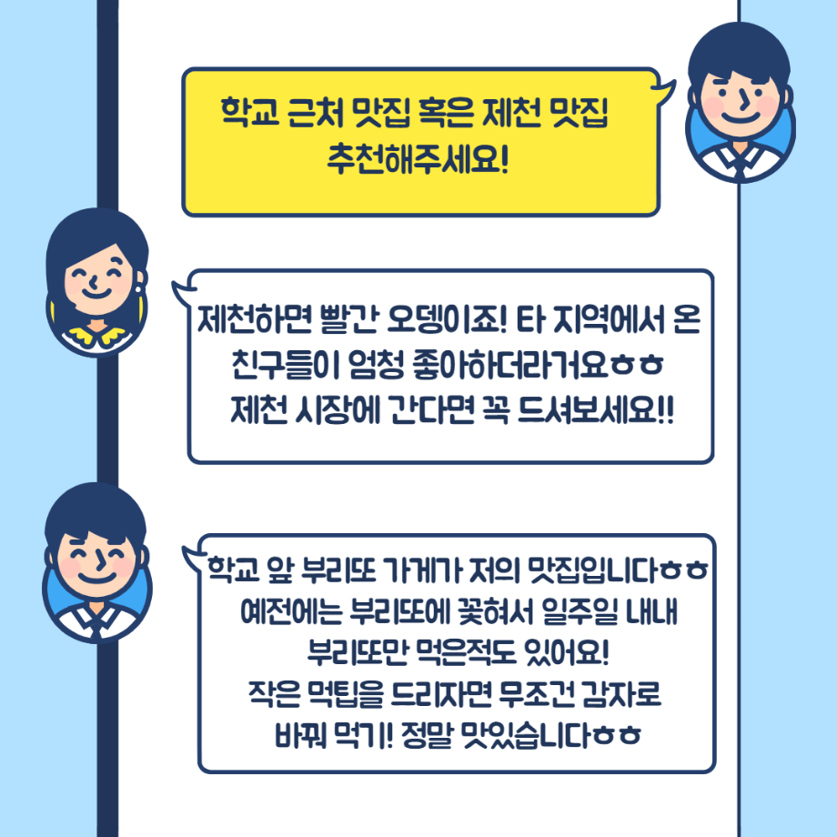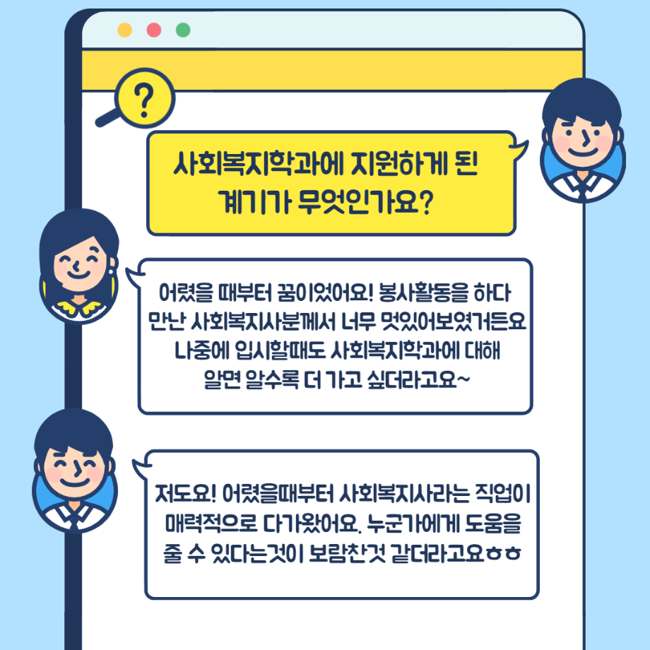 본문 시작 홈으로 커뮤니티 학과소개 교수소개 교육과정 현장실습 및 취업정보 커뮤니티 홈페이지가이드 학생 소통 광장 학과공지 학사일정 학생회 동아리 학생 소통 광장 포토갤러리 전공자료실 서식자료실 학생 소통 광장 페이스북 트위터 프린트 사복과 선배님께 여쭤봐(2,3학년) 사회복지학과 3038 2022-02-03 사복과 선배님께 여쭤봐 2,3학년편입니다! 목록 이전봉사활동 신청방법 다음 사복과 선배님께 여쭤봐(1학년) 담당부서 : 사회복지학과 담당자 : - 연락처 : 043-649-1799 최종수정일 : 2024-10-26 만족도조사 만족도 조사 이 페이지에서 제공하는 정보에 대하여 만족하시나요? 매우만족 만족 보통 불만족 매우불만족