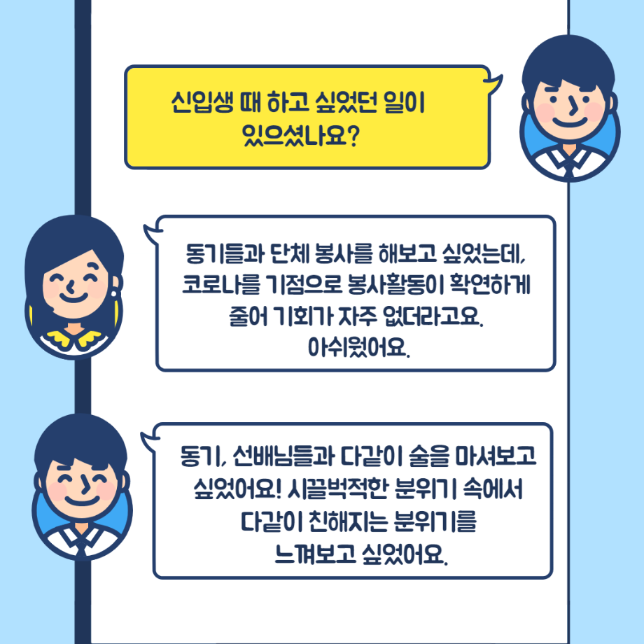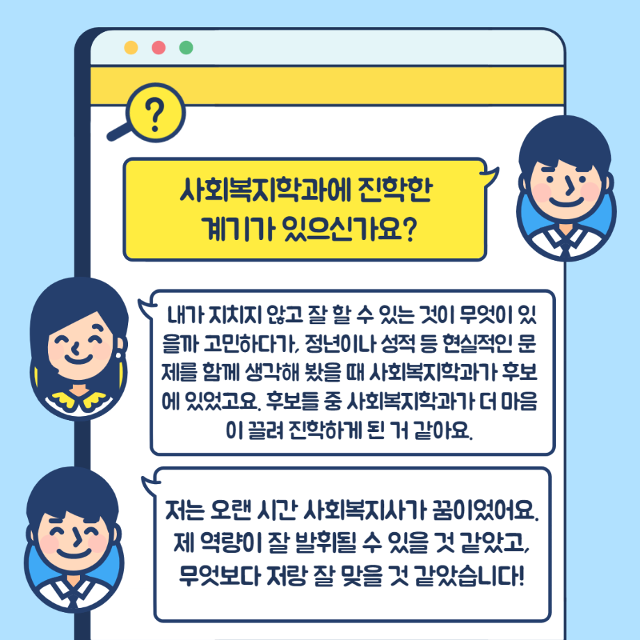 본문 시작 홈으로 커뮤니티 학과소개 교수소개 교육과정 현장실습 및 취업정보 커뮤니티 홈페이지가이드 학생 소통 광장 학과공지 학사일정 학생회 동아리 학생 소통 광장 포토갤러리 전공자료실 서식자료실 학생 소통 광장 페이스북 트위터 프린트 사복과 선배님께 여쭤봐(1학년) 사회복지학과 3161 2022-02-09 사회복지학과에 궁금한 점을 물어보는 사복과 선배님께 여쭤봐 - 1학년편(마지막)입니다! 목록 이전사복과 선배님께 여쭤봐(2,3학년) 다음 사회복지학과라면 필수 동아리.ZIP 담당부서 : 사회복지학과 담당자 : - 연락처 : 043-649-1799 최종수정일 : 2024-10-26 만족도조사 만족도 조사 이 페이지에서 제공하는 정보에 대하여 만족하시나요? 매우만족 만족 보통 불만족 매우불만족
