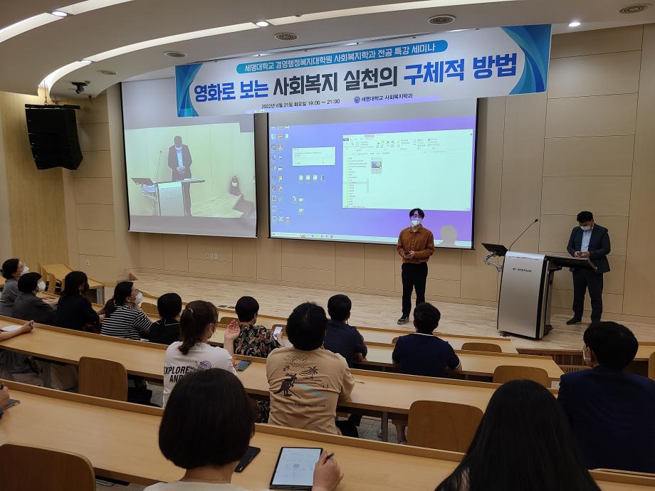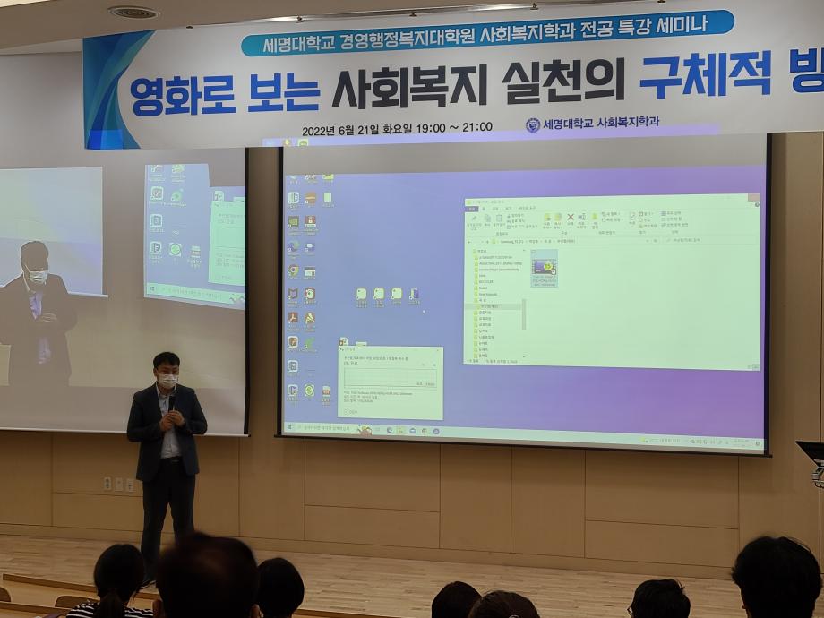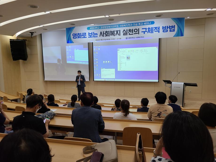 본문 시작 홈으로 커뮤니티 학과소개 교수소개 교육과정 현장실습 및 취업정보 커뮤니티 홈페이지가이드 학생 소통 광장 학과공지 학사일정 학생회 동아리 학생 소통 광장 포토갤러리 전공자료실 서식자료실 학생 소통 광장 페이스북 트위터 프린트 세명대학교 경영행정복지대학원 전공특강 세미나 사회복지학과 3030 2022-06-22 지난 6월 21일 18:30분부터 학술관 102호 제 2 컨퍼런스 홀에서 세명대학교 경영행정복지대학원 학생분들을 대상으로 전공특강 세미나를 진행하였습니다. 강연하시는 분은 현재 사회복지실천과교육연구소에 소장으로 있으신 이경국 소장님이시며, ' 영화(부산행)로 보는 사회복지실천'을 주제로 강연을 성공적으로 진행하셨습니다. 목록 이전세명대학교 사회복지학과 졸업 후 진로 장애인그룹홈편 다음 세명대학교 사회복지학과 졸업 후 진로 건강가정지원센터 편 담당부서 : 사회복지학과 담당자 : - 연락처 : 043-649-1799 최종수정일 : 2024-10-26 만족도조사 만족도 조사 이 페이지에서 제공하는 정보에 대하여 만족하시나요? 매우만족 만족 보통 불만족 매우불만족