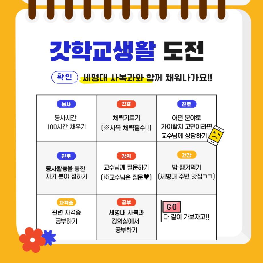 본문 시작 홈으로 커뮤니티 학과소개 교수소개 교육과정 현장실습 및 취업정보 커뮤니티 홈페이지가이드 학생 소통 광장 학과공지 학사일정 학생회 동아리 학생 소통 광장 포토갤러리 전공자료실 서식자료실 학생 소통 광장 페이스북 트위터 프린트 세명대학교사회복지학과 궁금한 학교생활 알아보기 빙고 사회복지학과 2685 2023-01-31 오늘은 세명대학교 사회복지학과 궁금한 학교생활 알아보기 빙고편입니다. 목록 이전정규형 교수님 교과목 소개 다음 세명대학교 사회복지학과 유용식 교수님 알아보기 편 담당부서 : 사회복지학과 담당자 : - 연락처 : 043-649-1799 최종수정일 : 2024-10-26 만족도조사 만족도 조사 이 페이지에서 제공하는 정보에 대하여 만족하시나요? 매우만족 만족 보통 불만족 매우불만족