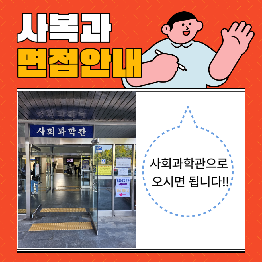 본문 시작 홈으로 커뮤니티 학과소개 교수소개 교육과정 현장실습 및 취업정보 커뮤니티 홈페이지가이드 학생 소통 광장 학과공지 학사일정 학생회 동아리 학생 소통 광장 포토갤러리 전공자료실 서식자료실 학생 소통 광장 페이스북 트위터 프린트 세명대학교 사회복지학과 오늘은 면접이 있어요!! 사회복지학과 4703 2023-10-13 '세명대학교 사회복지학과 오늘은 면접이 있어요!!' 편입니다. 목록 이전세명대학교 사회복지학과 실습 알려줄게! 다음 세명대학교 사회복지학과 면접응원 담당부서 : 사회복지학과 담당자 : - 연락처 : 043-649-1799 최종수정일 : 2024-10-26 만족도조사 만족도 조사 이 페이지에서 제공하는 정보에 대하여 만족하시나요? 매우만족 만족 보통 불만족 매우불만족