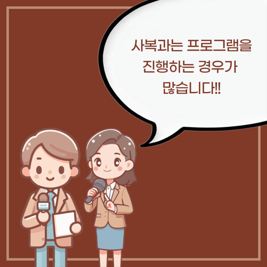 본문 시작 홈으로 커뮤니티 학과소개 교수소개 교육과정 현장실습 및 취업정보 커뮤니티 홈페이지가이드 학생 소통 광장 학과공지 학사일정 학생회 동아리 학생 소통 광장 포토갤러리 전공자료실 서식자료실 학생 소통 광장 페이스북 트위터 프린트 세명대학교 사회복지학과 레크레이션 자격증편 사회복지학과 3204 2024-08-12 세명대학교 사회복지학과 레크레이션 자격증편입니다. 목록 이전세명대학교 사회복지학과 무슨 자격증에 관한 것일까요? 다음 세명대학교 사회복지학과 아쉬움이 남는다면 Right now 담당부서 : 사회복지학과 담당자 : - 연락처 : 043-649-1799 최종수정일 : 2024-10-26 만족도조사 만족도 조사 이 페이지에서 제공하는 정보에 대하여 만족하시나요? 매우만족 만족 보통 불만족 매우불만족